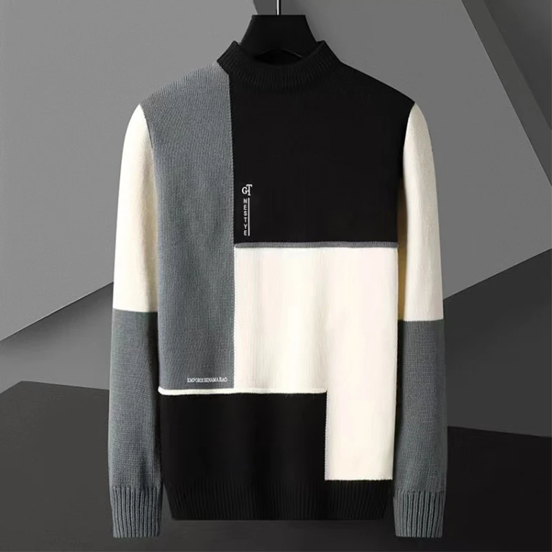 Новый Зимний кашемировый теплый свитер для мужчин с высоким воротником, мужской пуловер в стиле пэчворк, приталенный свитер, топы, вязаный мужской рождественский джемперОграниченное время 3 дня событие: 2 доллара США без порога, спешите получить купон и разместить заказ