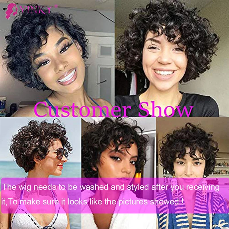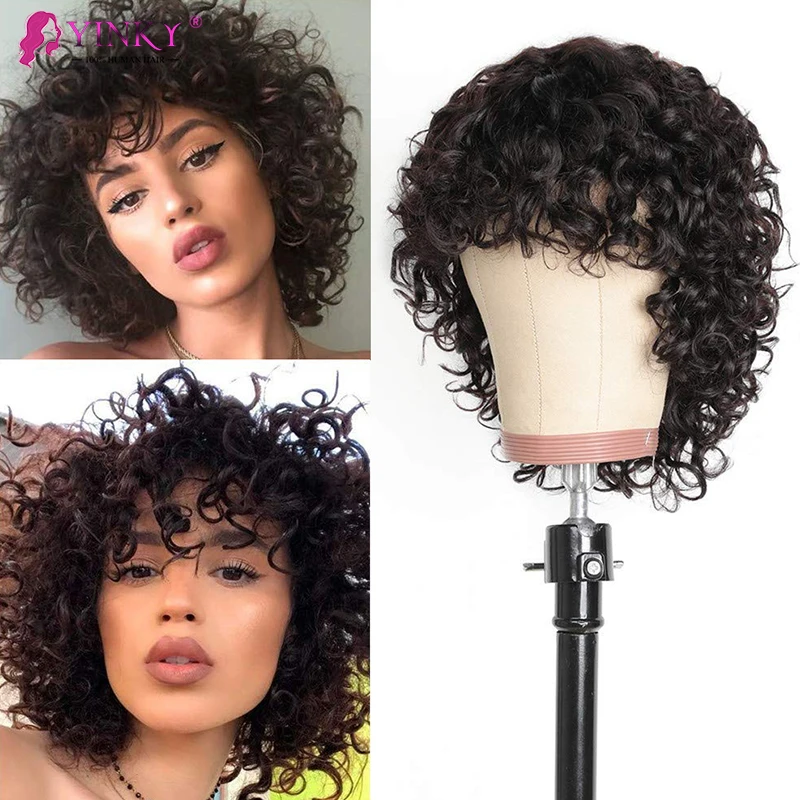 Бразильский парик с кудрявыми волосами Remy с челкой, плотность 180%, безклеевые короткие парики из человеческих волос с вырезанными волосами, парики для черных женщин, без парика на сетке