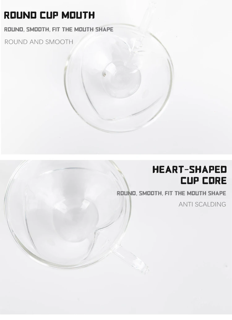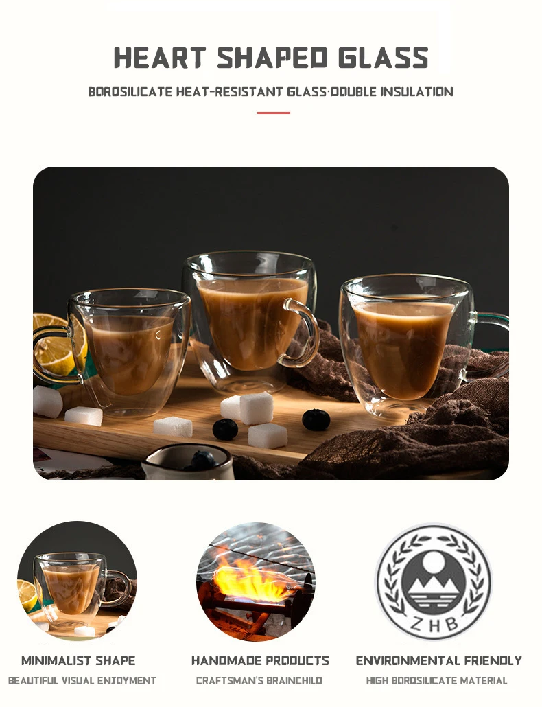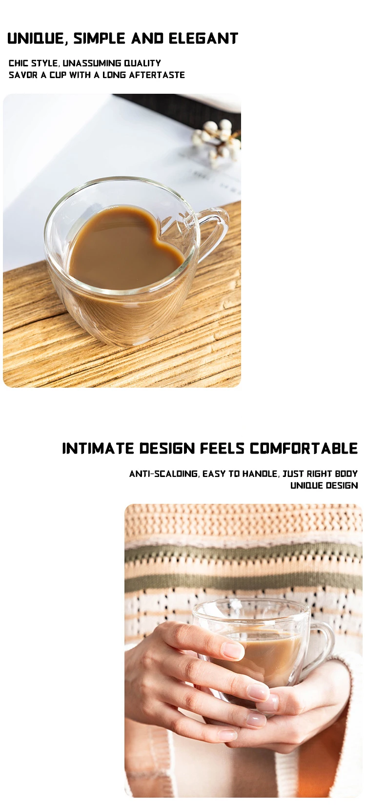 Кружка с двойными стенками для чая, чашка в форме сердца, бокал шампанского, вина, молока, сока, эспрессо, кофе, питьевая утварь