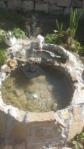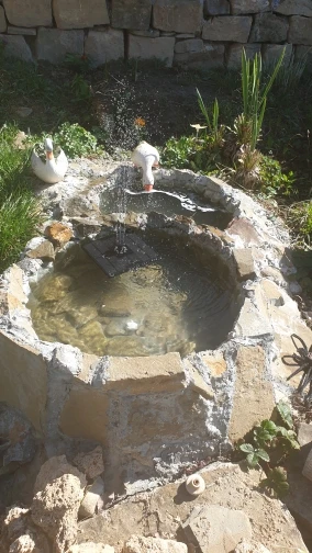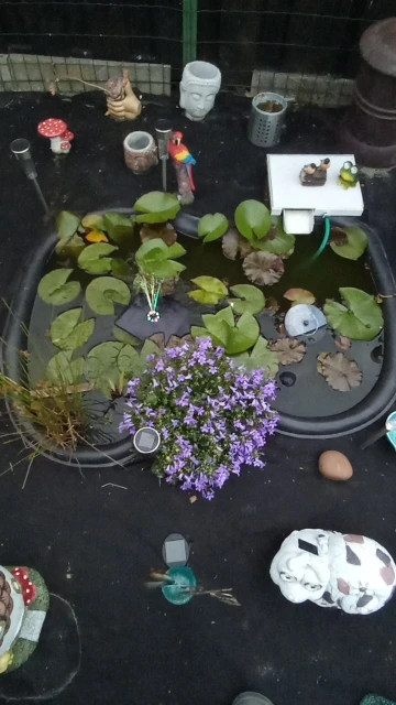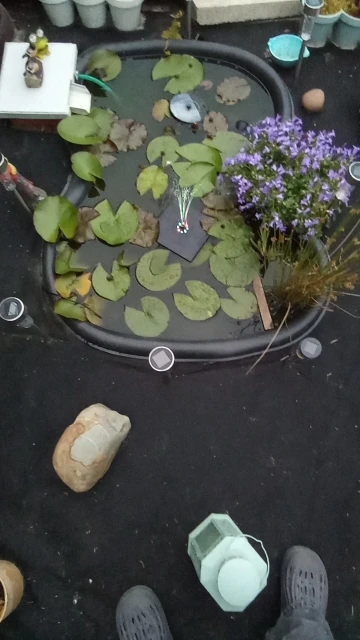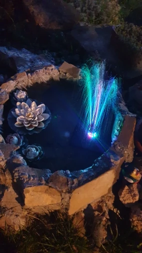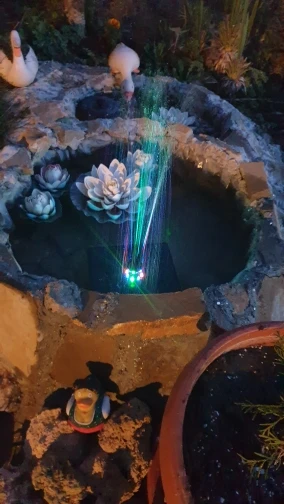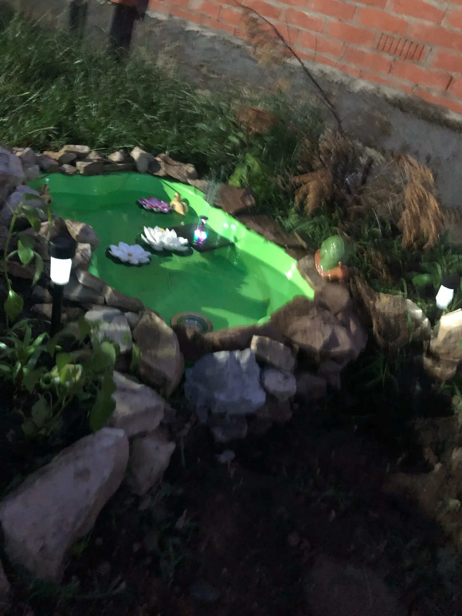 Ну такое себе прикольное. Задумался собрать скалу мини и купить насос на солнечной батареи и чтоб мини водопад. Эта прикольная штука, но забивается постоянно, вожа грязная в пруду, зато не цветет теперь из-за фонтанчика