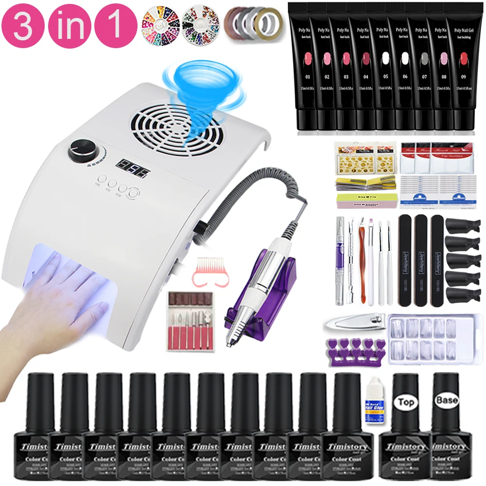 Поли набор гелей для ногтей маникюрный набор со светодиодной лампой...