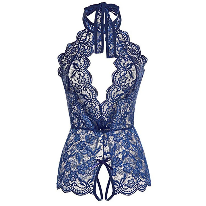 Цельнокроеное Эротическое нижнее белье с открытой спиной и лямкой на шее, сексуальное боди с вырезами, женское Кружевное боди с бретельками