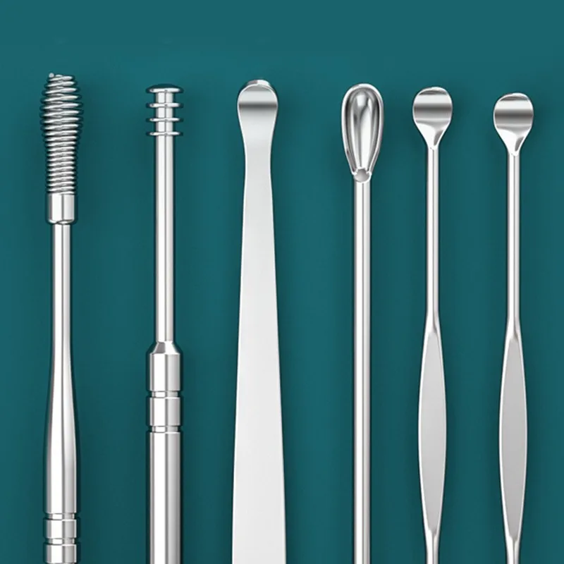 6 шт., нержавеющая сталь, инструмент для удаления воска, коллектор, спираль, поворот, чистка ушей, ложка для чистки ушей, портативный набор инструментов для уборки ушей