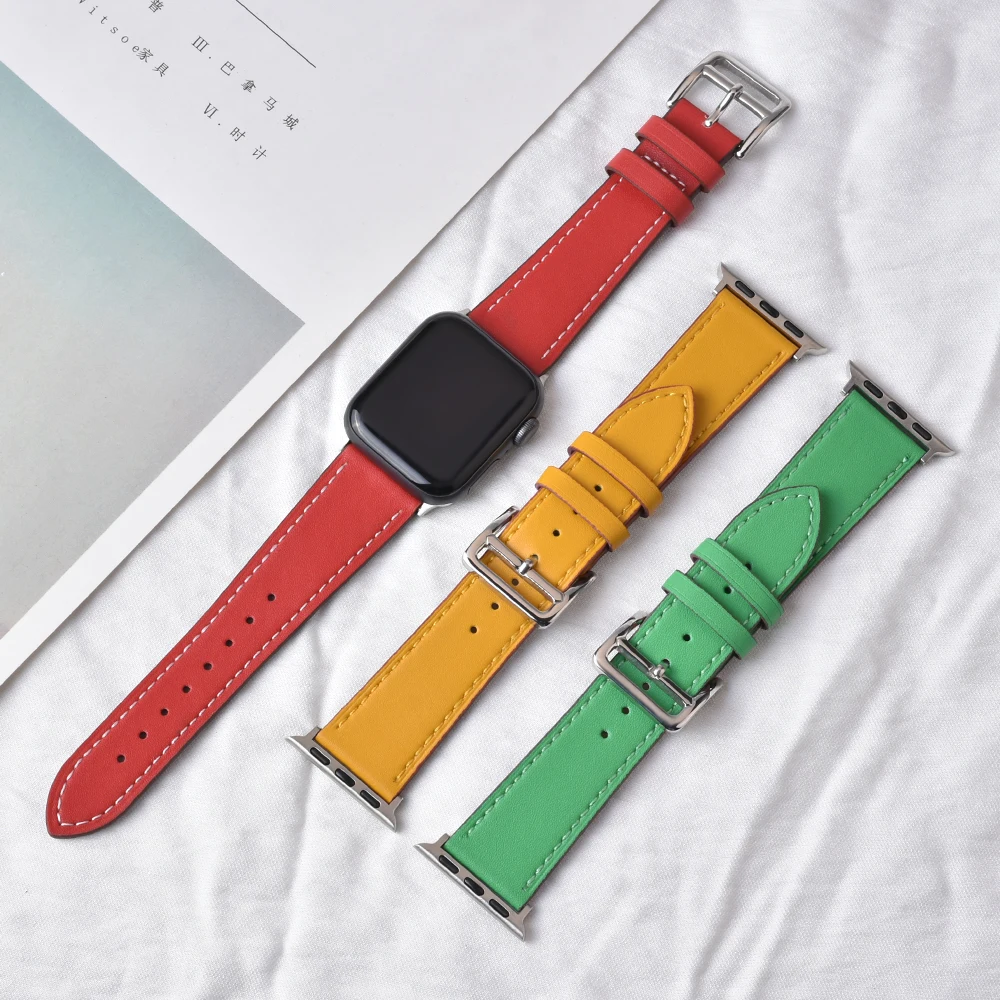 Ремешок кожаный для iWatch 7 41 мм 45 мм, спортивный браслет для Apple Watch 40 мм 44 мм Series 3 4 5 6 SE 3842 мм