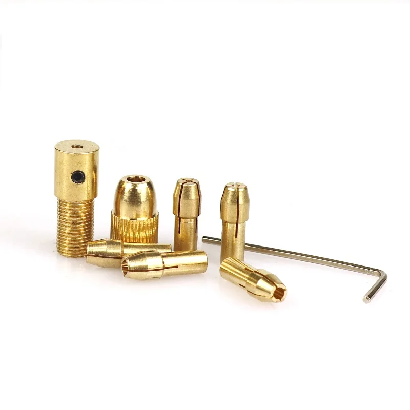 Спецификация:Диаметр зажима: 0,5 мм/1,0 мм/1,5 мм/2,5 мм/3,0 ммДиаметр хвостовика: 2,35 мм 3,175 ммМатериал: латуньПогрешность в измерениях ранг: ≤ 0,05 ммПрименение: для небольшого сверла, а после подключения к двигателю для печатных плат сверление для специального мини-сверла