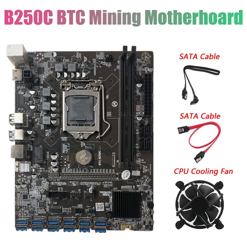 Материнская плата B250C для майнинга BTC с 2 кабелями XSATA + вентилятор 12xpcie в разъем для графической карты USB3.0 LGA1151 поддерживает DDR4 DIMM RAM