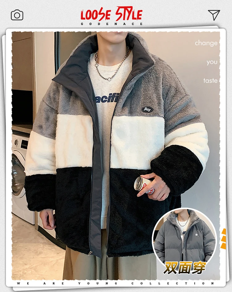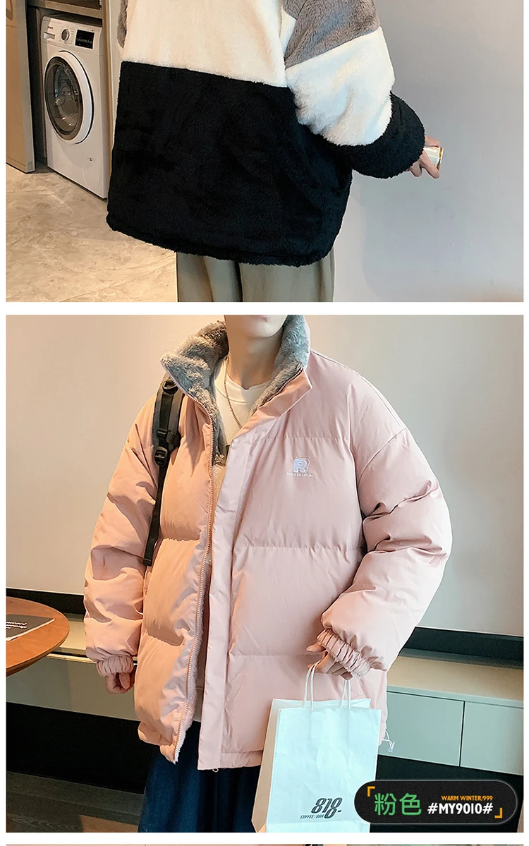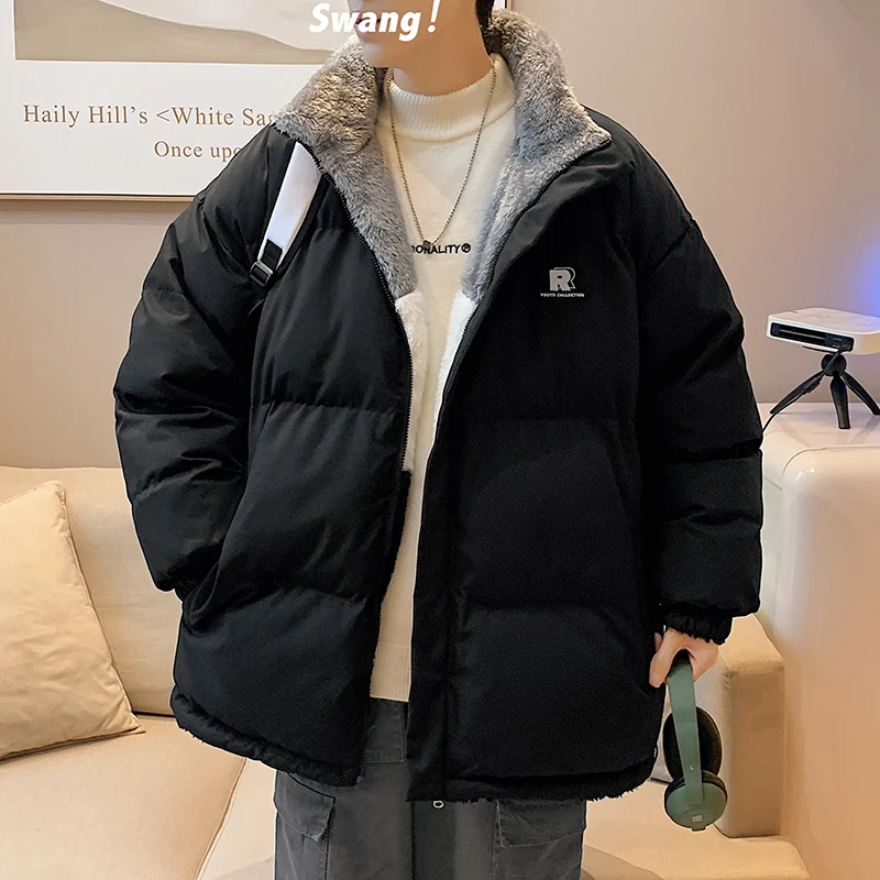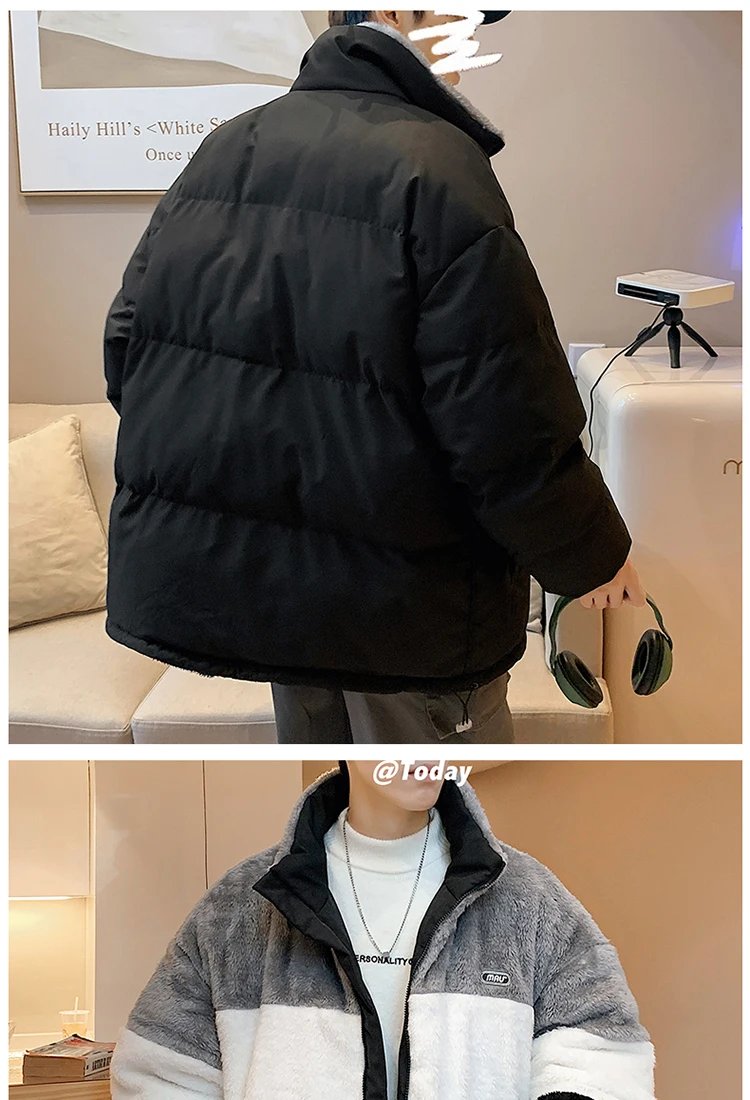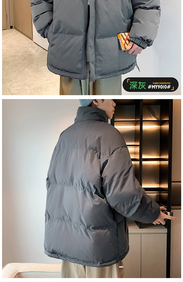 Harajuku, куртка-пузырь, уличная, универсальная, негабаритная, плотная, с подкладкой, однотонное пальто, корейский стиль, модные, флисовые, теплые парки, мужская зимняя куртка
