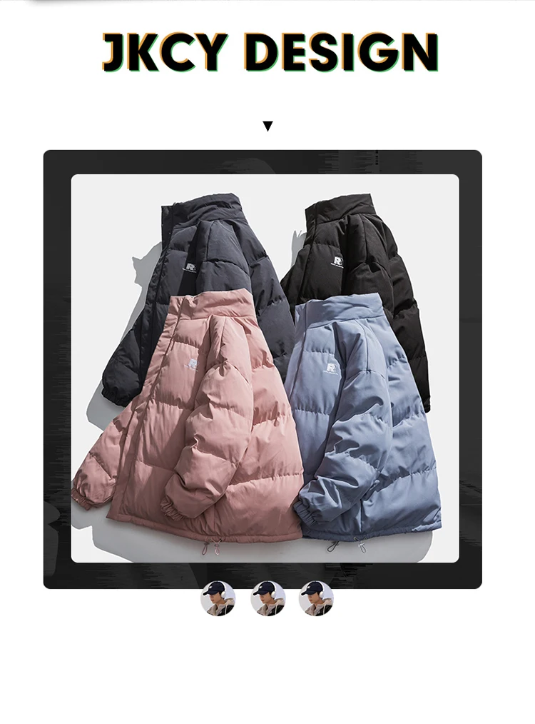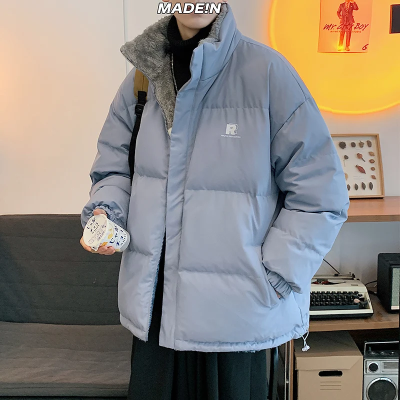 Мужская теплая куртка-пуховик с воротником-стойкой, в стиле Харадзюку