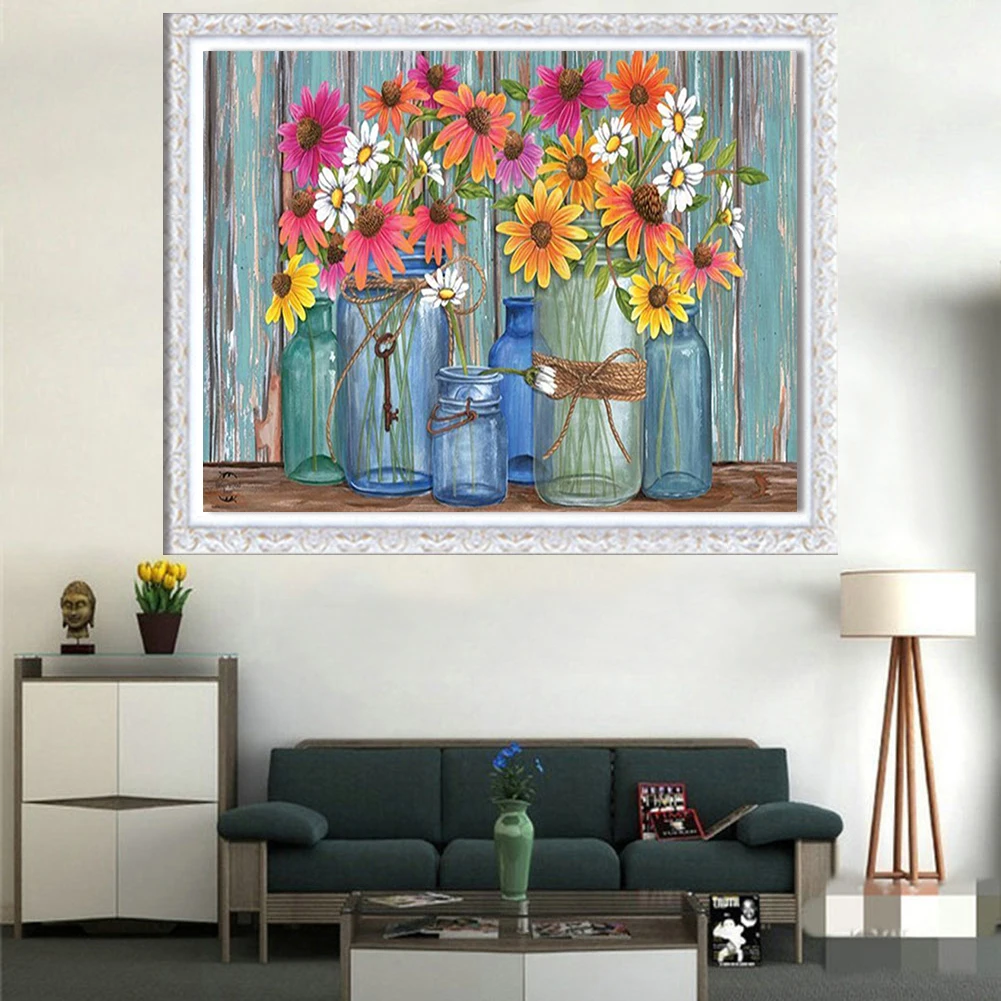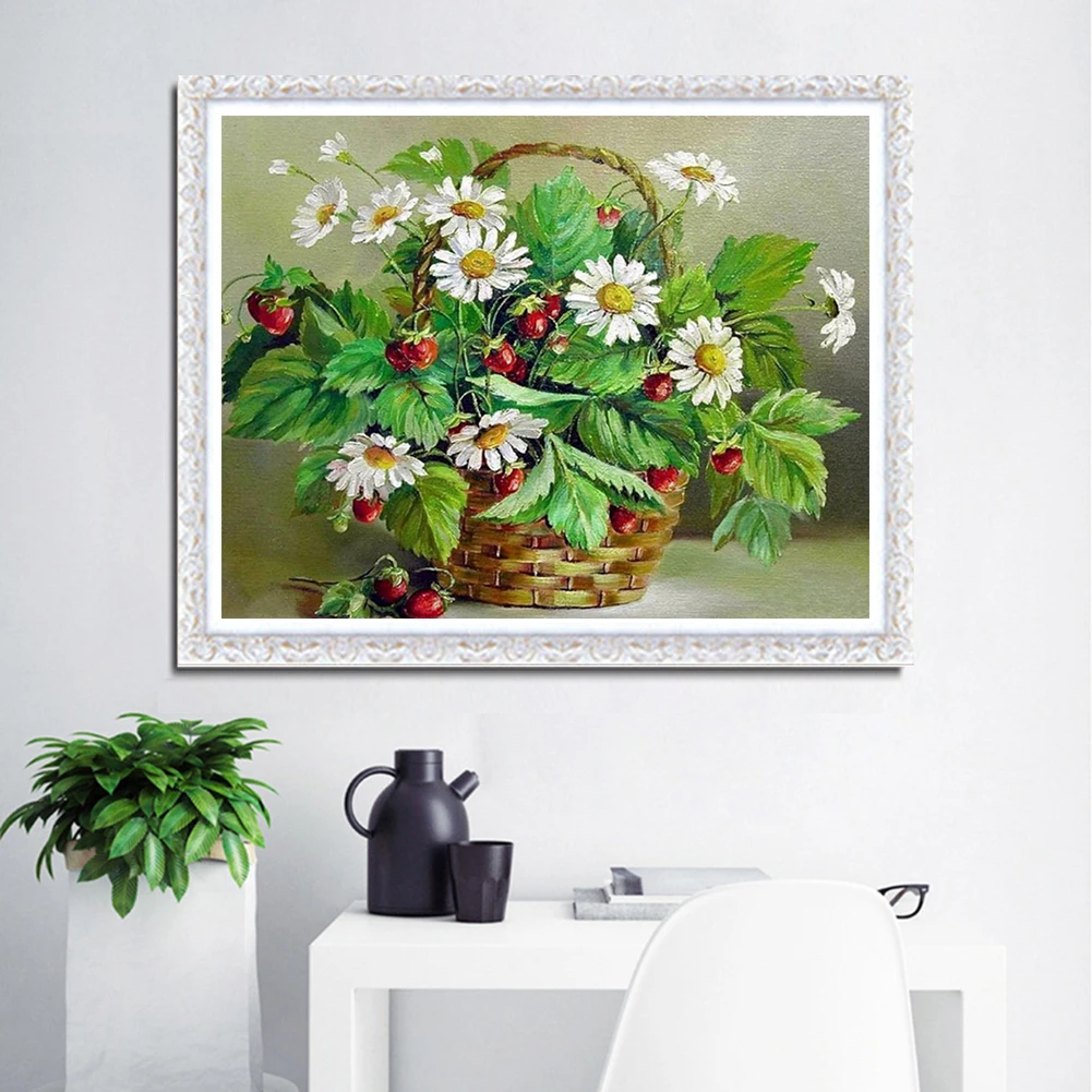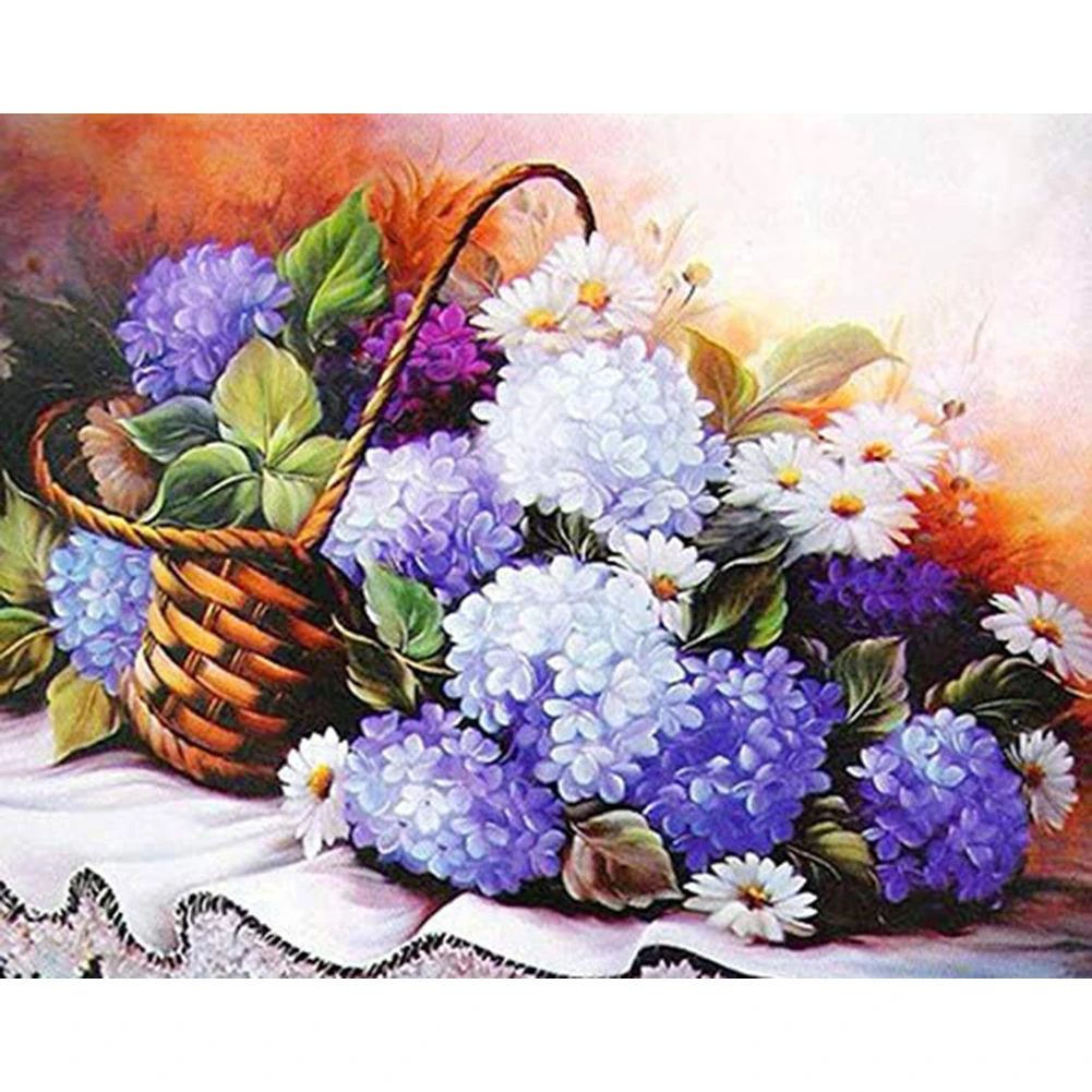 Алмазная картина сделай сам, картина с цветами, ваза, цветочная корзина, алмазная вышивка, мозаика, картина, Рождественское украшение, подарок