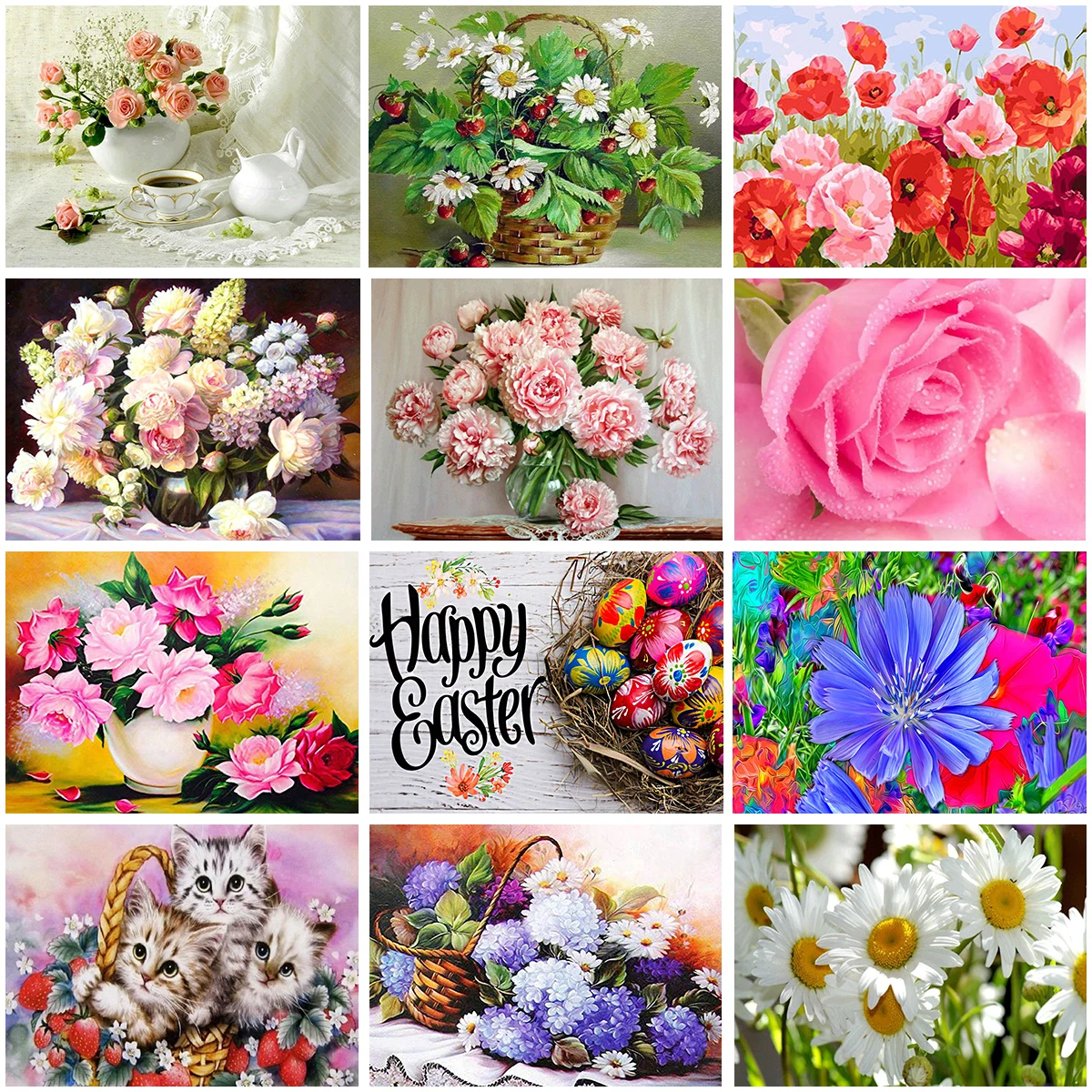 Алмазная живопись 5d "сделай сам", мозаика с цветами, Набор для выш...