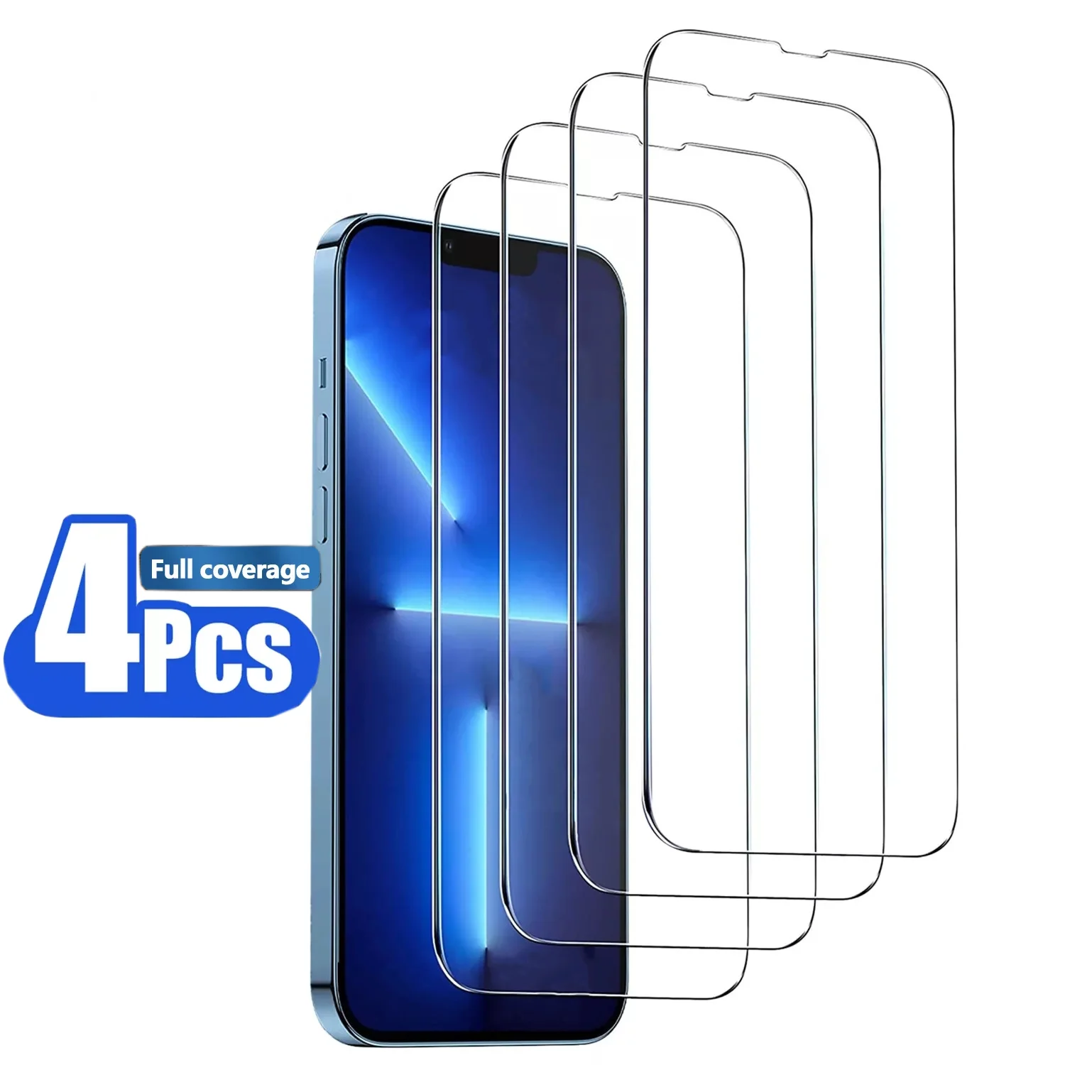 4 шт. Защитное стекло для iPhone 13 11 12 Pro Max Mini, Защита экрана для iPhone X S XR XS Max 7 8 4 5 6 S Plus, закаленное стекло