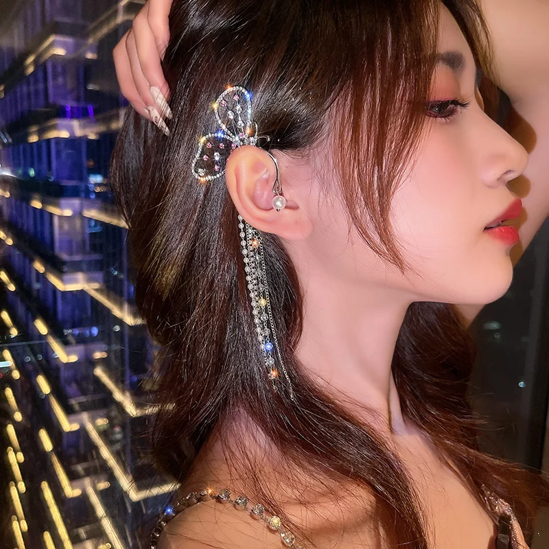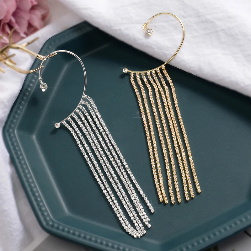 20 видов стилей, роскошная блестящая длинная кисточка из горного хрусталя, ушные манжеты, без пирсинга, серьги-клипсы для женщин, свадебные корейские трендовые ювелирные изделия