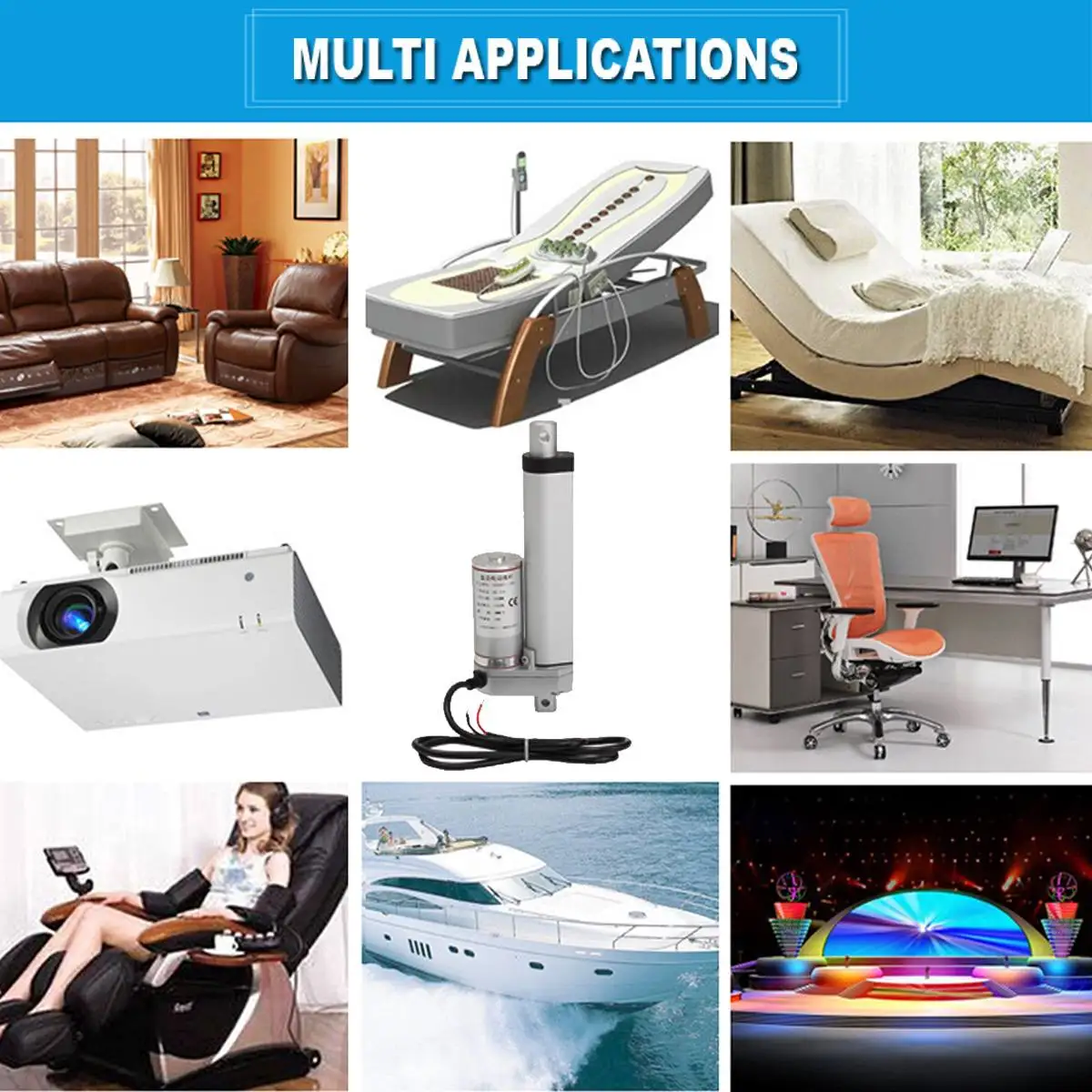 Технические параметры:Номинальная мощность: 20 Вт, максимум 30 Вт.Нажимная планка с каждой стороны содержит ограничительный переключатель перемещения. Когда телескопическая планка бежит к верхней или верхней части, она автоматически отключит электричество.Двигатель не пропустит. Отключите питание, его можно остановить в любом положении, с функцией самоблокировки.Толкатель управляется двигателем постоянного тока с винтовым приводом. Телескопический стержень может быть вытянут только без вращения.Мотор положительный и отрицательный. Например, если положительный электрод растягивается и отрицательный электрод уменьшается, телескопическое направление стержня может быть изменено путем его изменения.Температура окружающей среды-20 °C до + 75 °C.Стандартный Класс защиты: IP54.Низкий уровень шума, уровень шума менее 42 дБ.Пожалуйста, не разбирайте устройство.Характеристики продукта: Управляйте другими объектами, чтобы нажимать, тянуть, поднимать, опускать.Применение продукта: ТВ Подъемные столы, массажные кровати, электрические кровати, медицинские кресла, электрическое оборудование, микро-устройства, электрические диваны, рамки камеры, камеры и многое другое.
