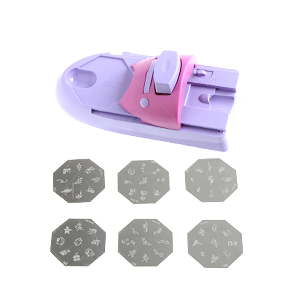 Ручная печатная машина для дизайна ногтей с 6 металлическими штампованными пластинами для маникюра, цветной лак для ногтей, принтер для ногтей, набор инструментов