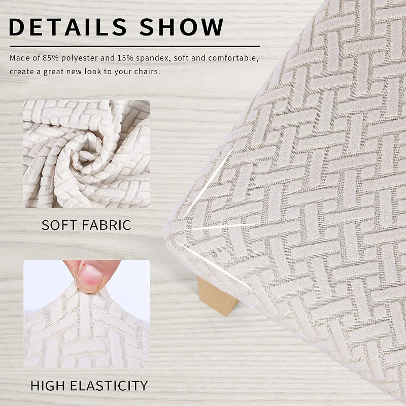Водонепроницаемый Съемный чехол на сиденье для обеденного стула, жаккардовое растягивающееся сиденье для стула, наволочка для столовой, кухонных стульев, банкетов♣Высококачественный Материал: 85% полиэстер и 15% спандекс.Достаточно эластичный, чтобы соответствовать большинству мягких обеденных стульев. Высококачественная ткань делает Чехол для стула прочным, не мнется, не скатывается, мягкий и удобный.♣Основная функция и использование: достаточно толстый, чтобы защитить стулья от пятен, износа, царапин и царапин, освежить старый, поврежденный или уродливый вид обеденных стульев.♣Размер и цвет:Длина подушки сиденья 14 ''-18''(35-46 см),Ширина подушки сиденья 14 ''-18''(35-46 см),Толстое сидение на подушке 1,2 ''-2(3-5 см)''.Примечание: чтобы выглядеть лучше, снимите подушку, чтобы установить чехол.♣Дизайн: элегантный и простой стиль, отличный выбор гостиных для украшения, ресторанов, кухонь, гостиниц, свадеб и других мероприятий. Эластичный низ и конструкция с 4 ремешками могут предотвратить скольжение крышки сиденья.♣Инструкции по уходу: ручная или машинная стирка в холодной воде; Сушить в подвешенном состоянии; Не отбеливать; Не гладить.