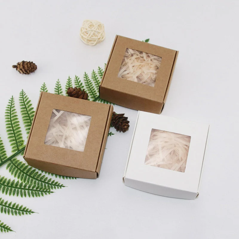 Новая Подарочная коробка из крафт-бумаги с окошком из ПВХ, 4 шт., печенье, мыло ручной работы, ювелирные изделия, подарочная упаковка, товары вечерние, подарочная коробка