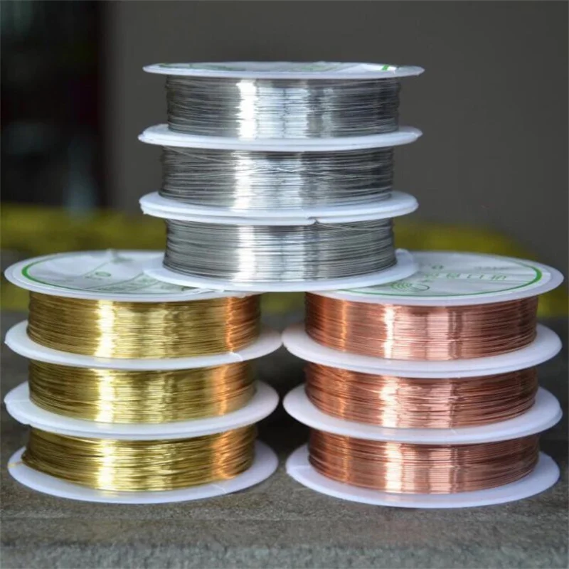 Медная проволока для браслетов и ожерелий, серебрянаяЗолотаяРозоваяЗолотая проволока для самостоятельного изготовления бисера, цветная проволока для бисероплетения, шнур для ювелирных изделий, нить для рукоделия, 0,2-1 мм
