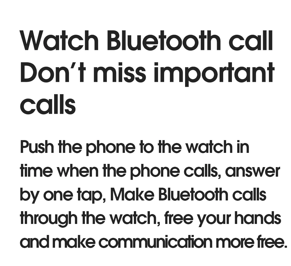 Пункты продажи: IP68 водонепроницаемый, 1,75 дюймовый дисплей, низкое потребление двойного режима Bluetooth, SiriОсновные характеристики: загрузка Watchface, Разделенный экран, блокировка доступа, вызов Bluetooth, частота сердечных сокращений, BP, ECG, запись периода для женщин.