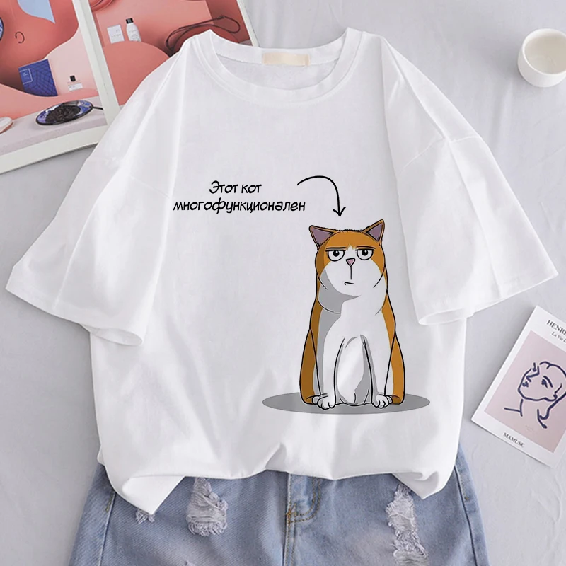 Футболка женская с графическим принтом, модная Милая рубашка в япон...
