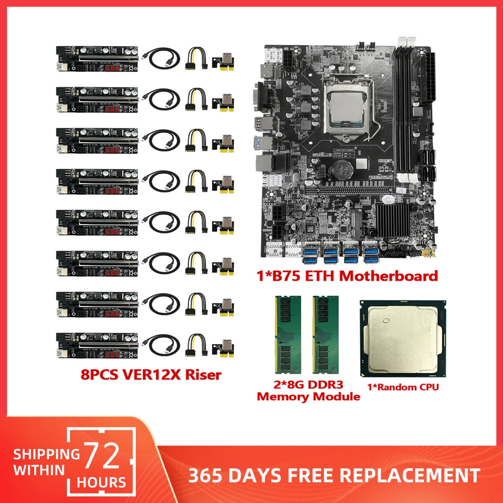 Набор материнской платы B75 BTC для майнинга, комбинированный с случайным ЦПУ, поддержка 8 GPU, Графическая карта, LGA 1155 DDR3 процессор 4 SATA USB3.0 ETH Майнер