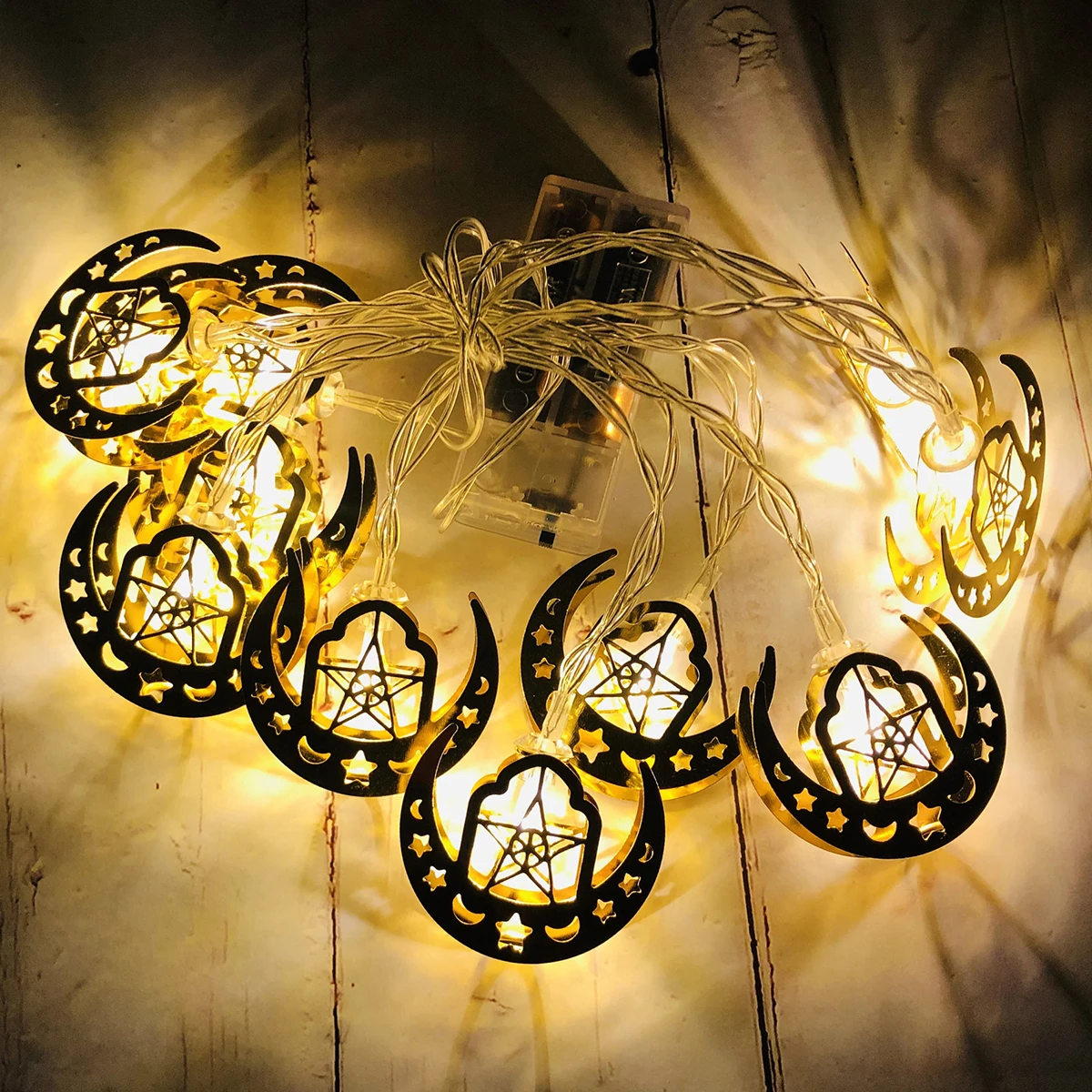 10 Огни Рамадана украшение Луна Звезда светодиодные гирлянды ИД Муб...
