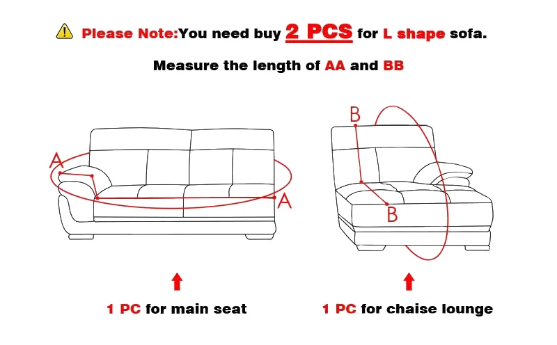 Для секционного дивана нужно купить 2 шт., пожалуйста, проверьте Размер дивана AA и BB. Пожалуйста, проверьте таблицу размеров, если вам нужно, пожалуйста, свяжитесь с нами.