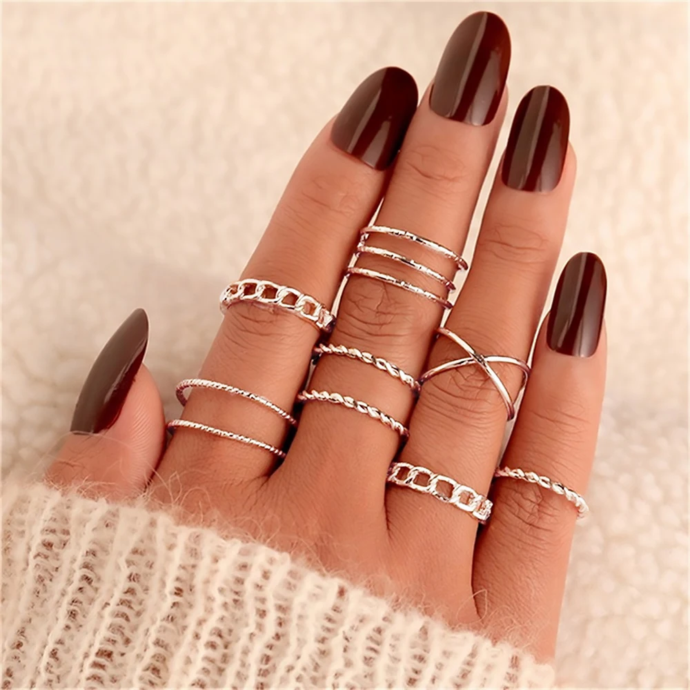 FNIO 2022 богемные простые наборы металлических колец наборы геомет...