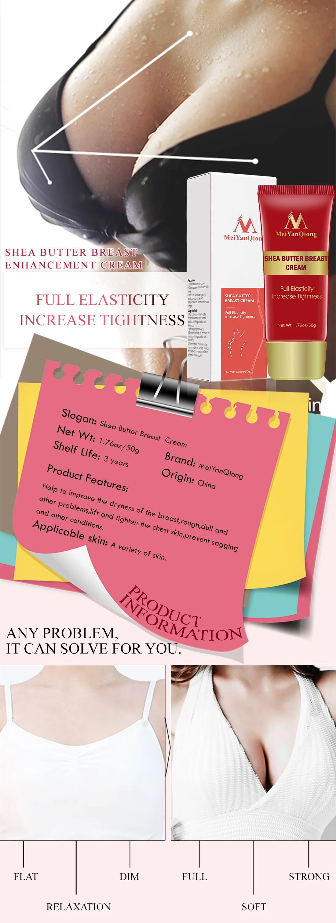 Содержит масло ши различные растительные экстракты, такие как мягкая и шелковистая текстура, может быстро проникать и поглощать, помогает улучшить сухость груди, грубые, тусклые и другие проблемы, подтяните и затягивайте грудь, предотвращая провисание и другие условия, чтобы двойная грудь стала естественной, полной, Однотонный, мягкий, блестящий и эластичный.