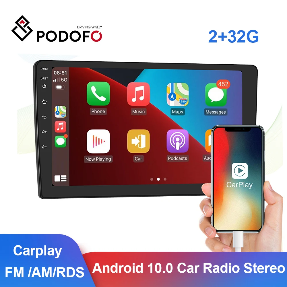Podofo Android 10,0 автомобильный Радио стерео Carplay 9 "10" емкостный сенсорный экран HD FM /AM/RDS DSP GPS Навигация BT USB плеер