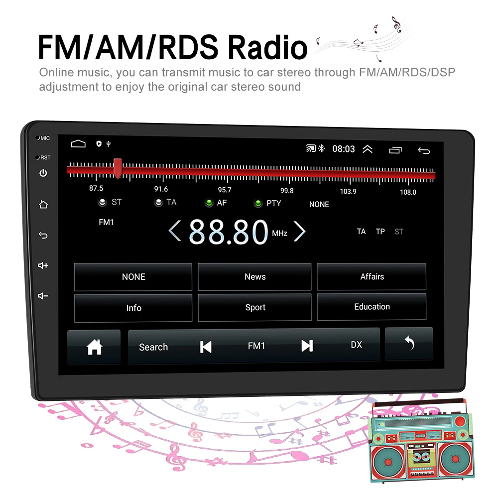 ● FM /AM/RDS радио: онлайн-музыка вы можете передавать музыку на автомобильную стереосистему FM, чтобы наслаждаться оригинальным стереозвуком автомобиля, с 30 предустановленными станциями