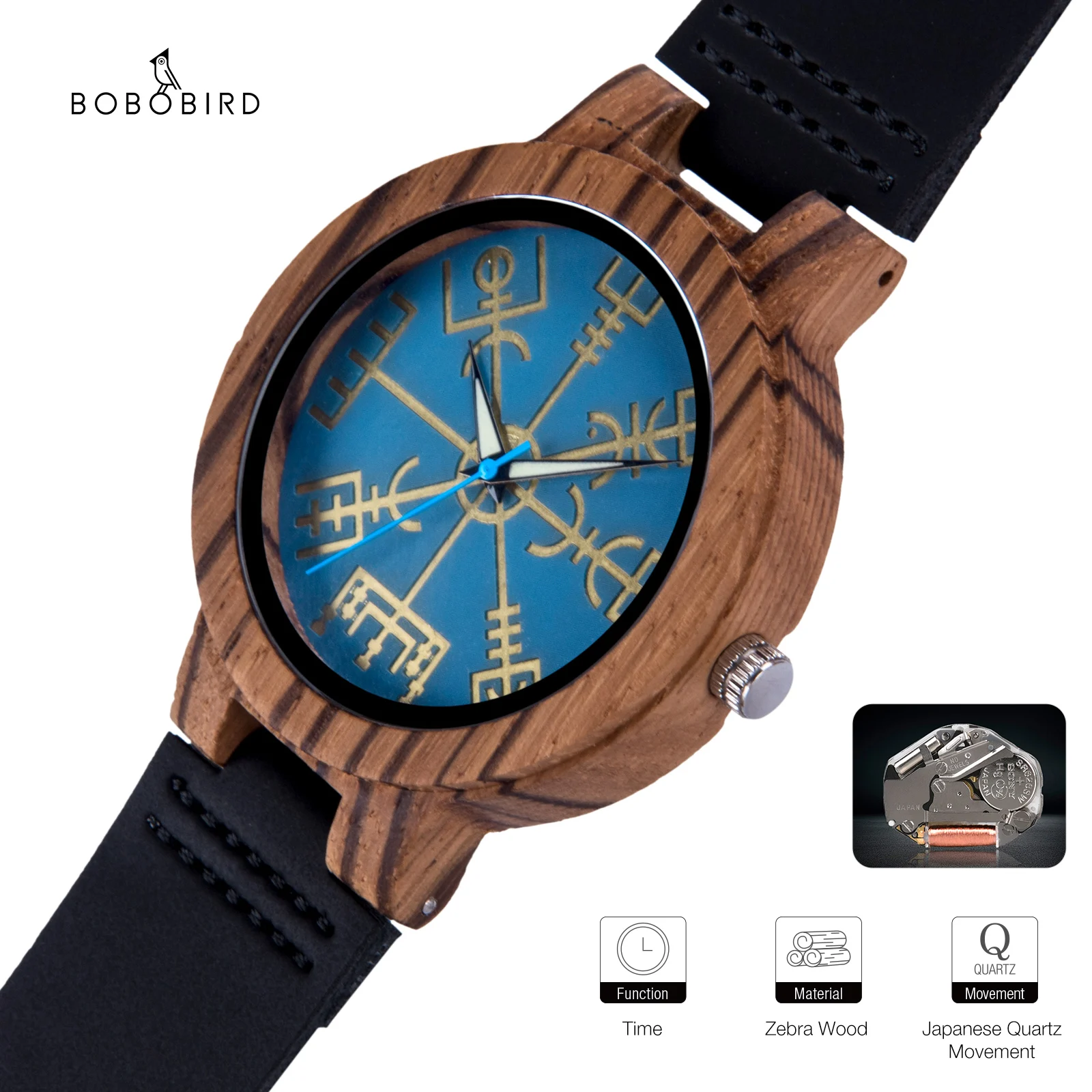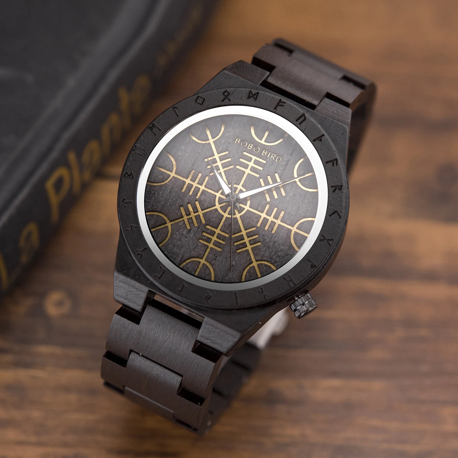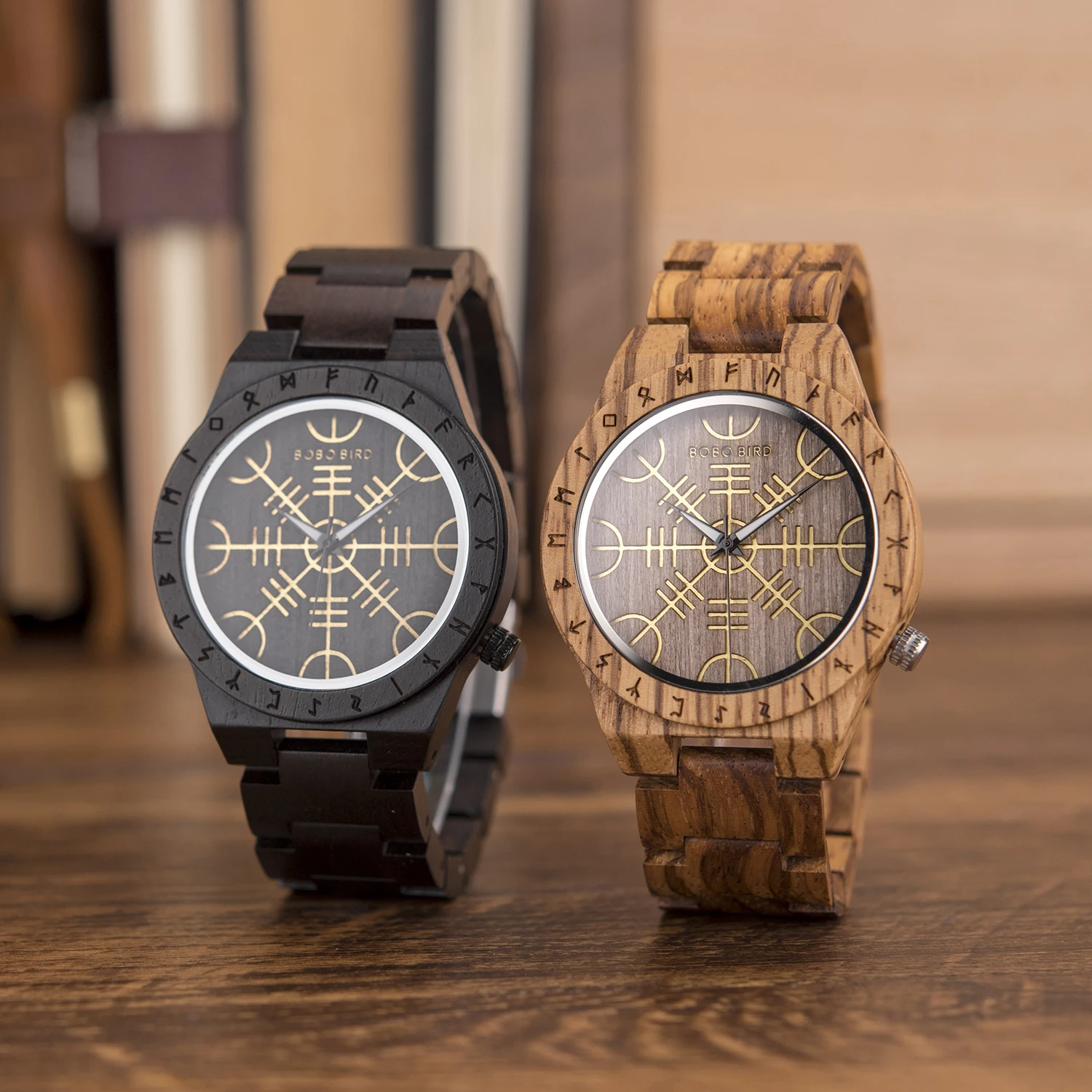 Деревянные часы BOBOBIRD со шлем Awe Aegishjalmr или Vegvisir и Run...