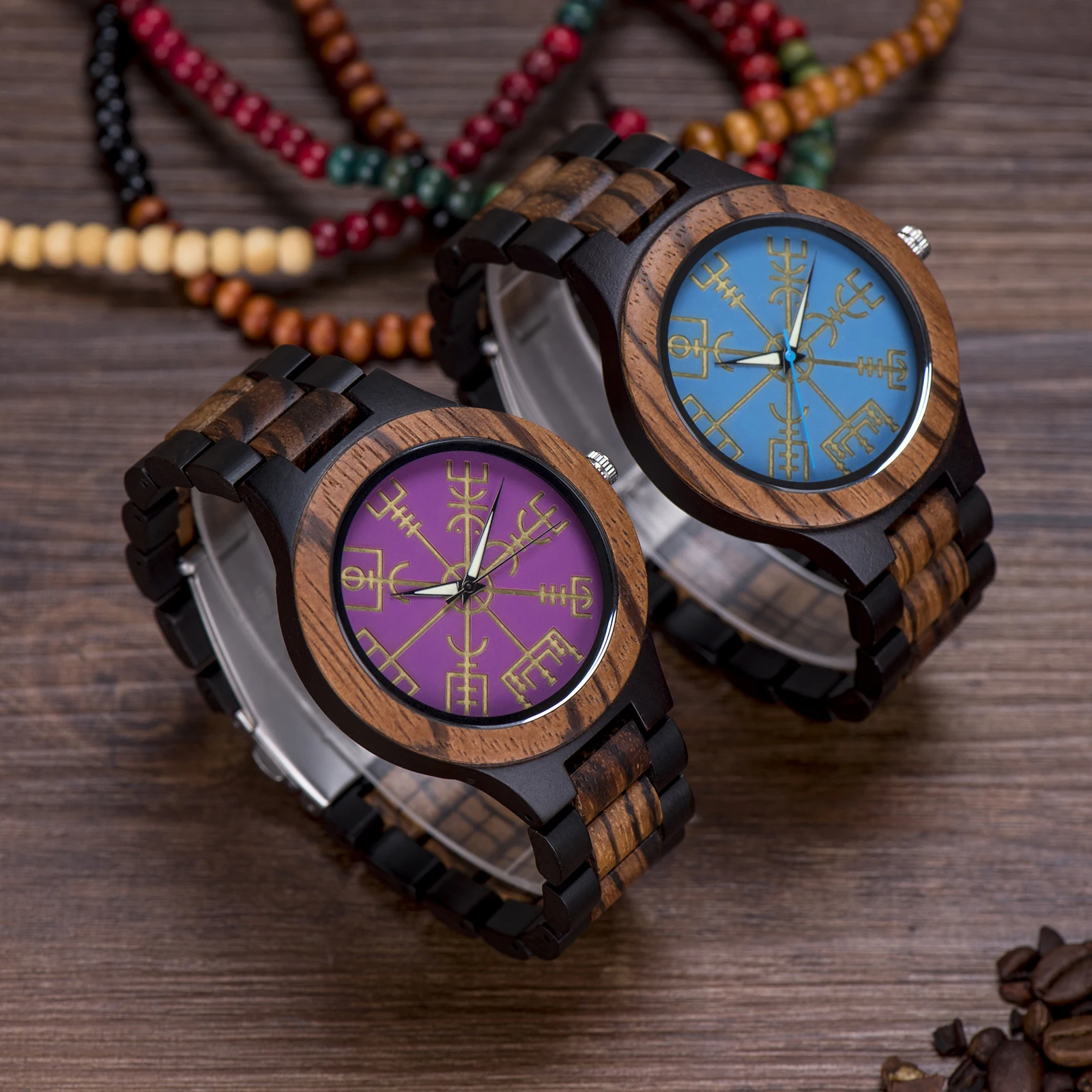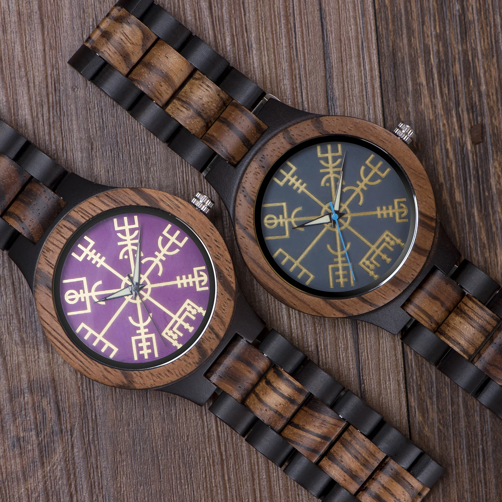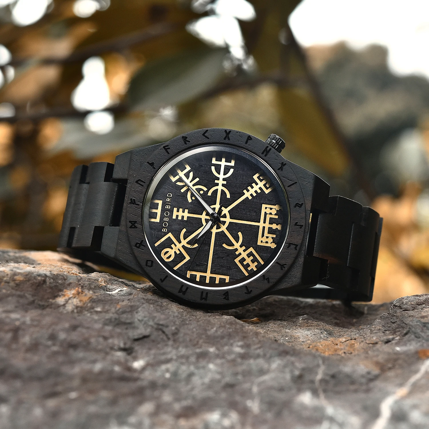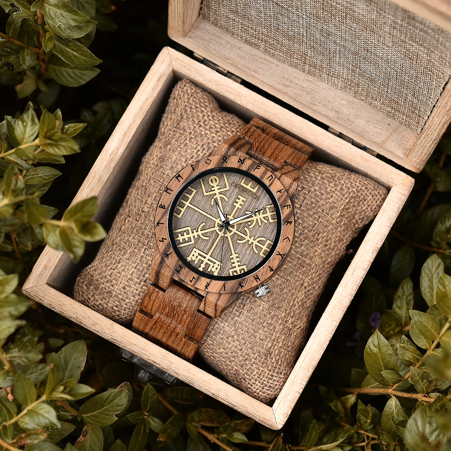 Деревянные часы BOBOBIRD со шлем Awe Aegishjalmr или Vegvisir и Run...