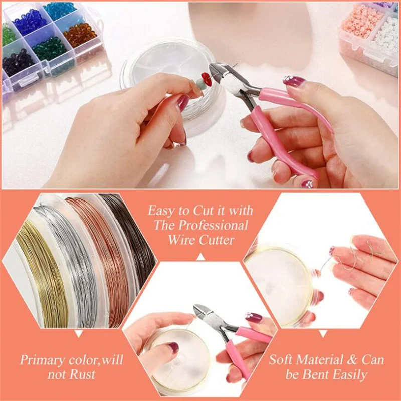 Медная проволока для браслетов и ожерелий, серебрянаяЗолотаяРозовая...