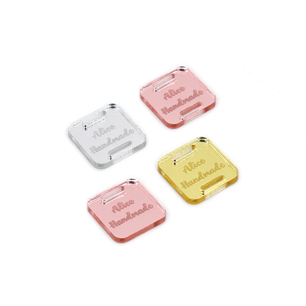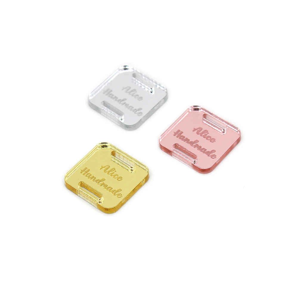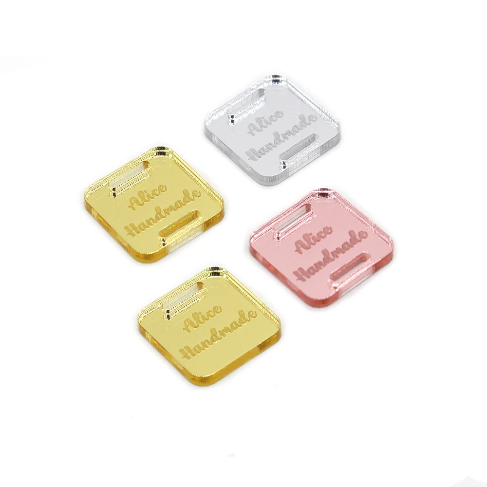 Квадратные этикетки, акриловые зеркальные этикетки для одежды, дизайн логотипа под заказ для сумок, подарочных коробок, украшение для этикеток ручной работы, 50 шт