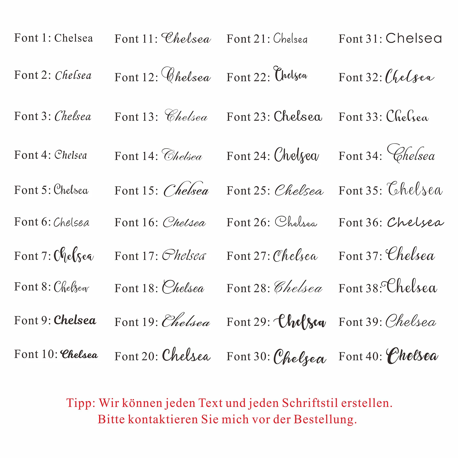 Пожалуйста, обратите внимание: после заказа, пожалуйста, отправьте стиль шрифта, который вы хотите, через примечание о заказе или сообщение.