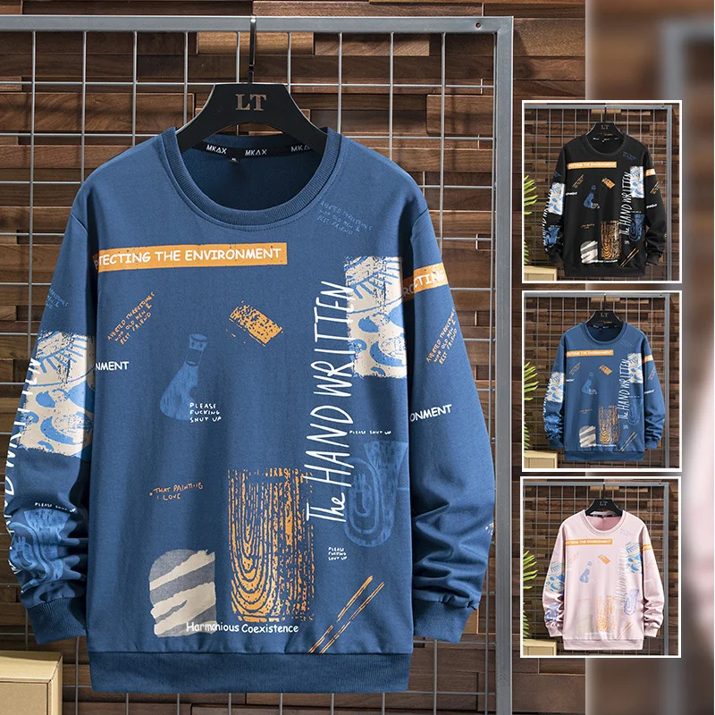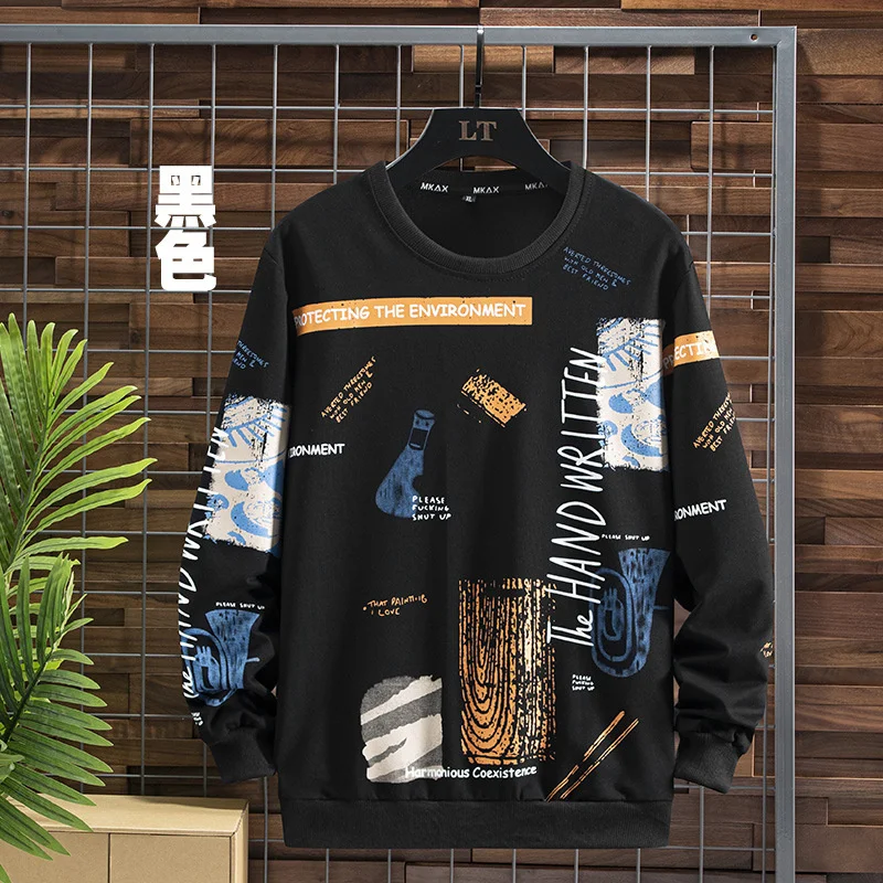Модный свитер с круглым вырезом, Мужская Уличная одежда в стиле пэч...