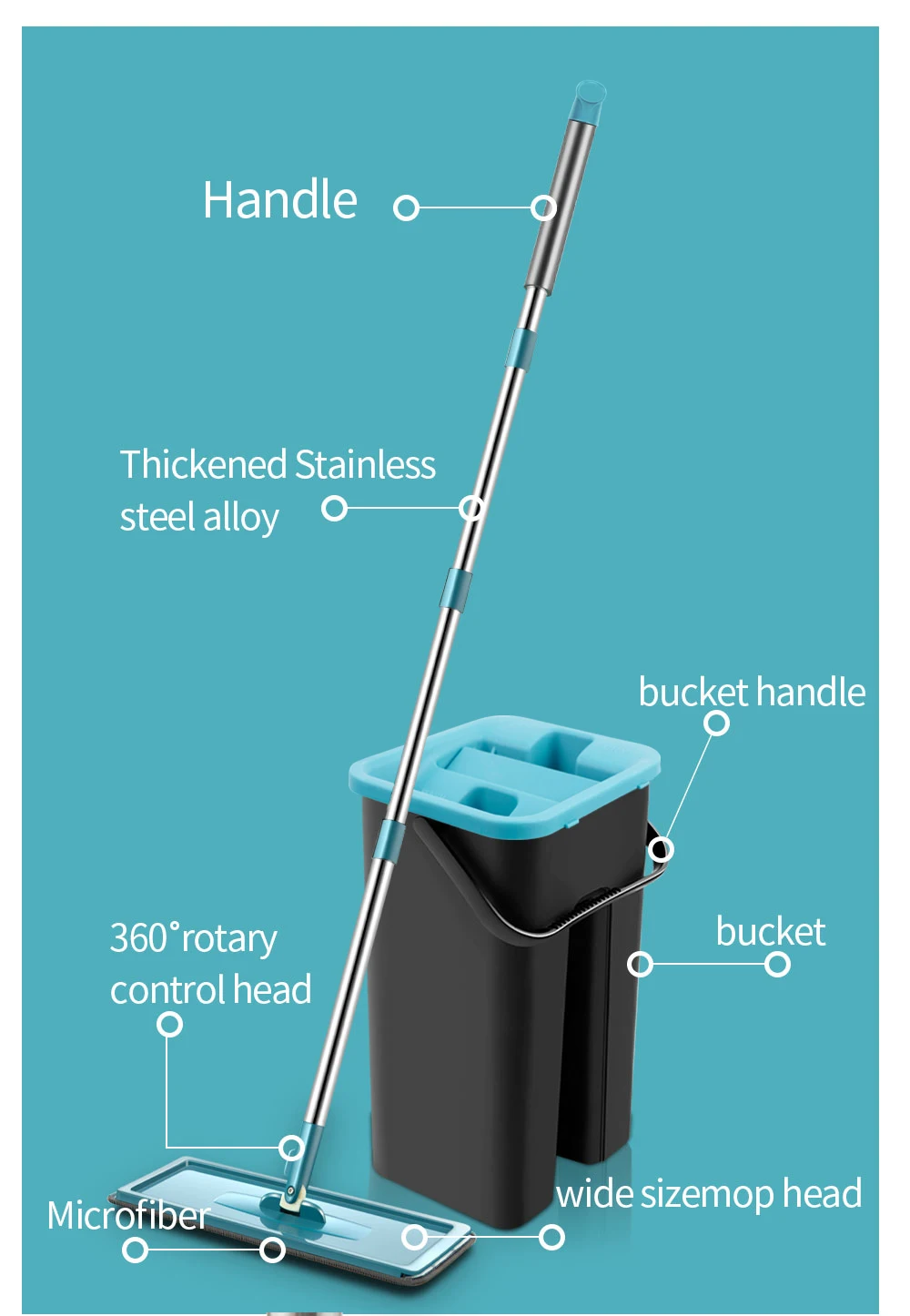 Плоская швабра с ведром, выдавливаемая вручную, моющая швабра, вращающаяся на 360 градусов, чистящая швабра, микрофибра, влажная, сухая, использование, домашние кухонные инструменты