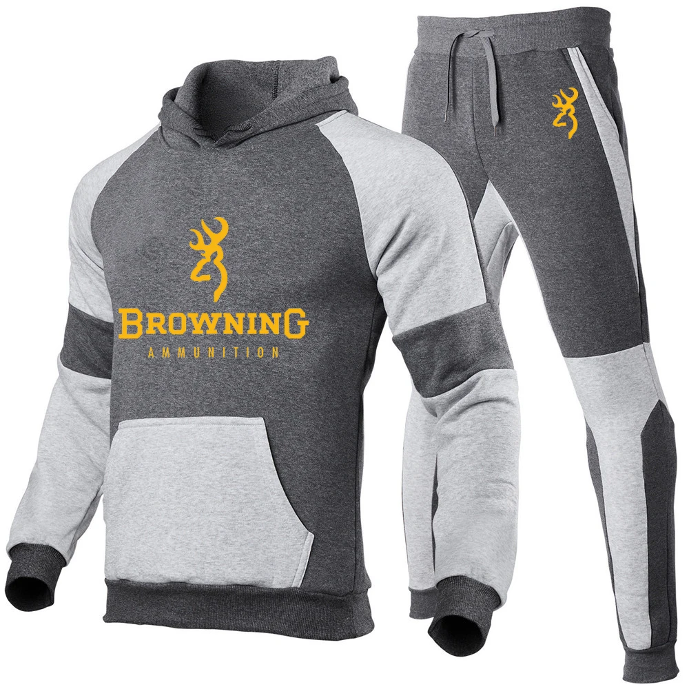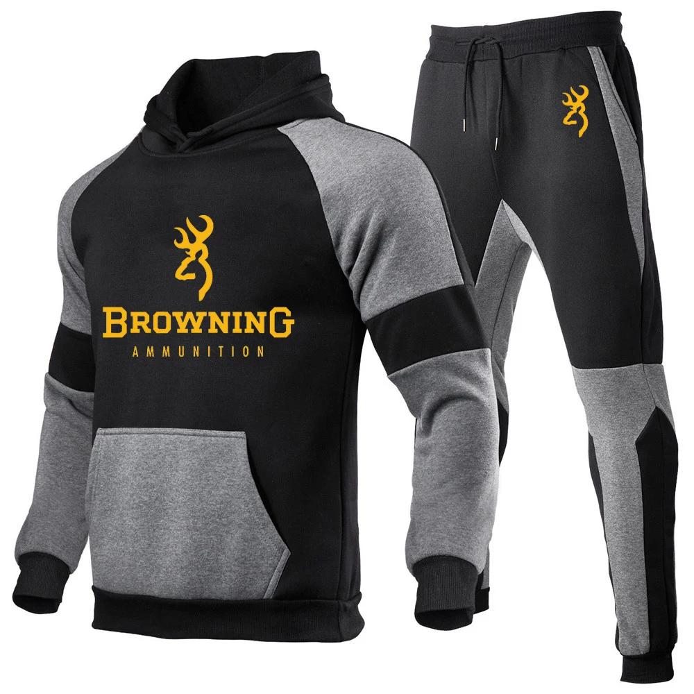 Мужской спортивный костюм с капюшоном BROWNING, черный повседневный костюм из двух предметов, толстовка с капюшоном и штаны на весну и осень 2021