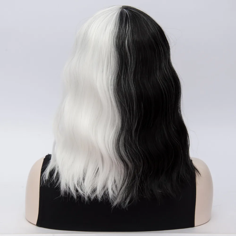 Парик для косплея CRUELLA Deville De Vil, кудрявые наполовину белые...