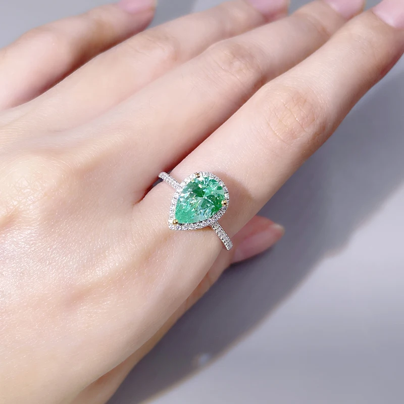 Драгоценные камни Tianyu 14K белое золото 585 Halo Кольца Драгоценные камни груша зеленая шпинель DEF Moissanite женские кольца, бижутерия, аксессуары для свадьбы