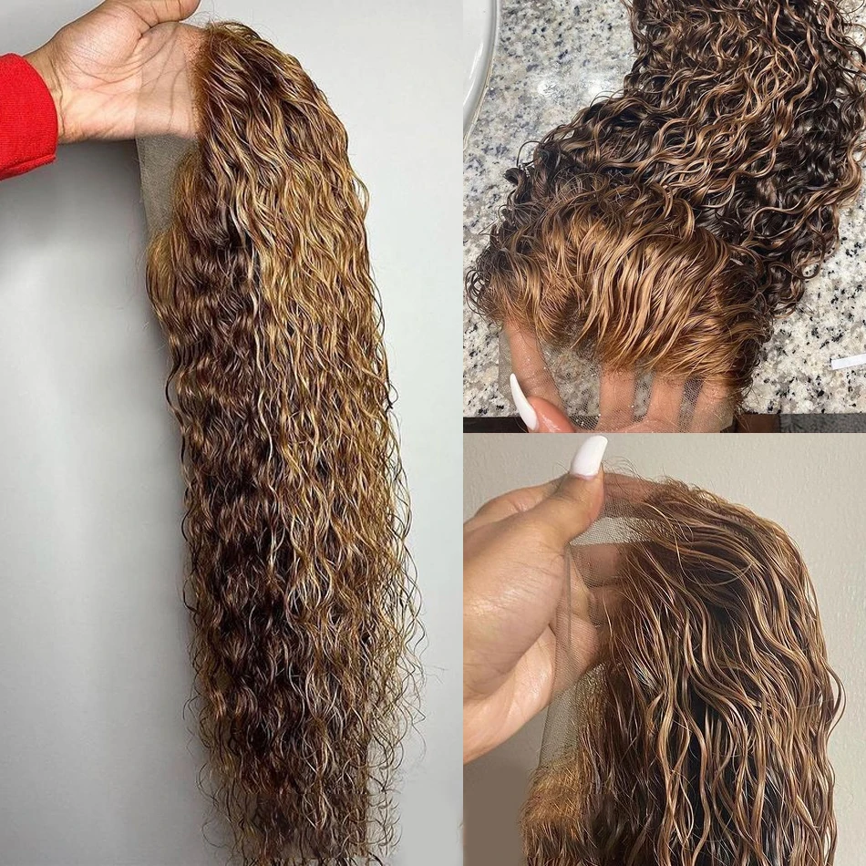 Парик из человеческих волос 13x4, вьющийся парик, медовые светлые фронтальные парики на сетке для черных женщин, 30 дюймов, цветной парик с эффектом омбре и глубокой волной