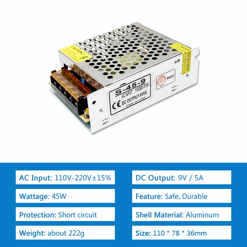 Импульсный источник питания для дома, 45 Вт, трансформатор переменного тока 220 В в постоянный ток 9 в 5 А, адаптер питания светодиодный светильник