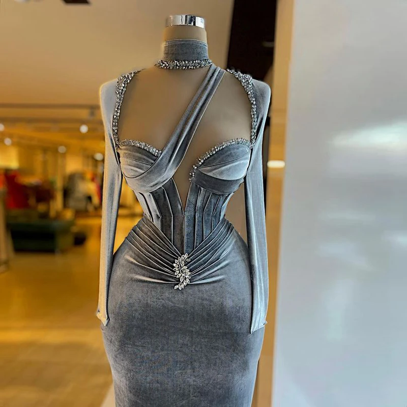 Женское бархатное платье-русалка, длинное вечернее платье с длинным рукавом, с кристаллами, на заказ