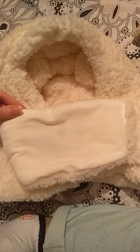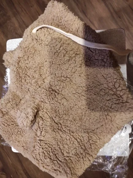 Выглядит очень тепло и пушисто на фотографиях, но на самом деле... Это всего лишь два предмета дешевой ткани. Я думаю, вы должны потратить немного больше денег и купить в другом магазине лучшую кепку. Это бесполезно. Эта шапка не удобная, не теплая. Вырез слишком большой для всех.