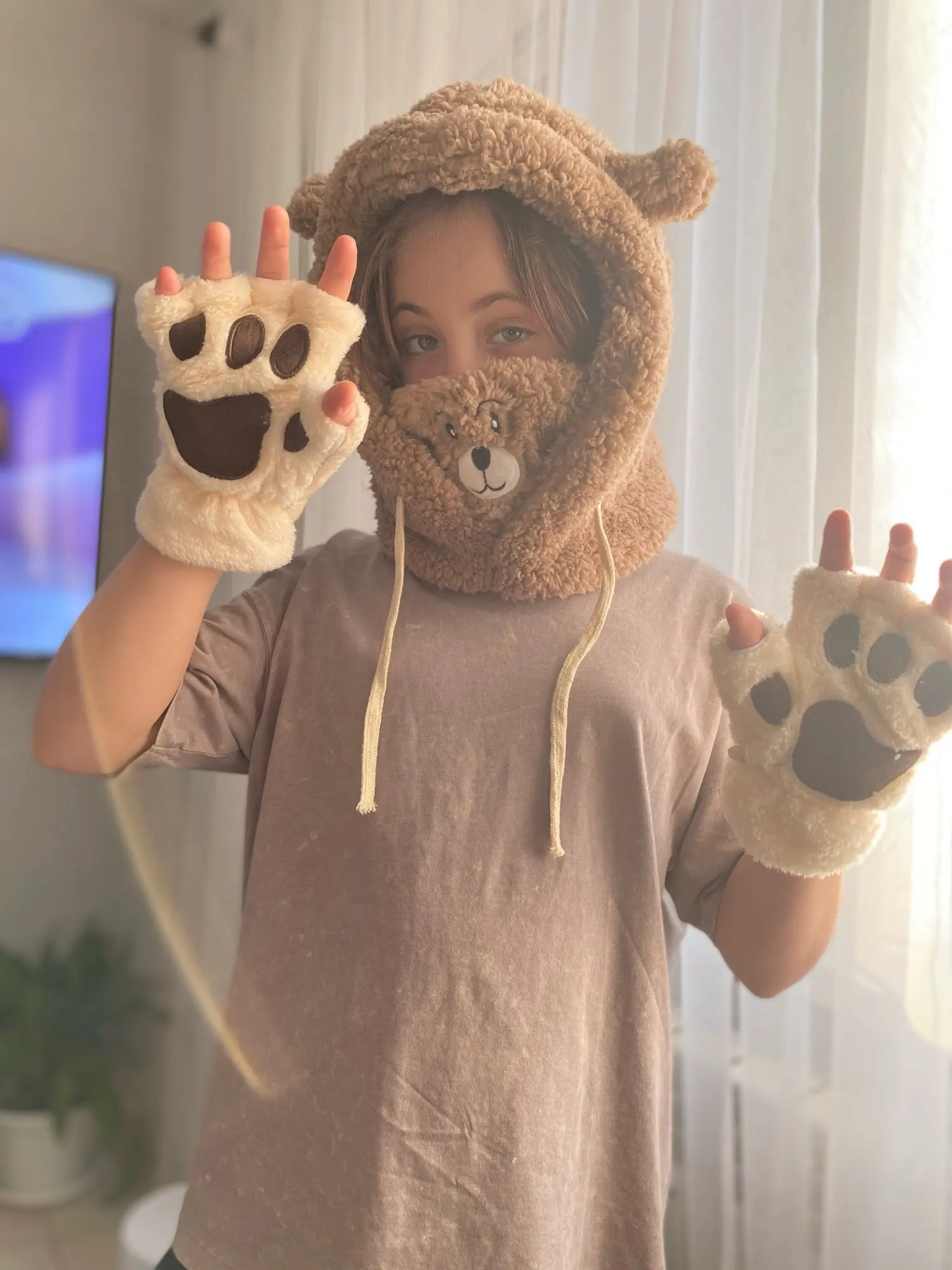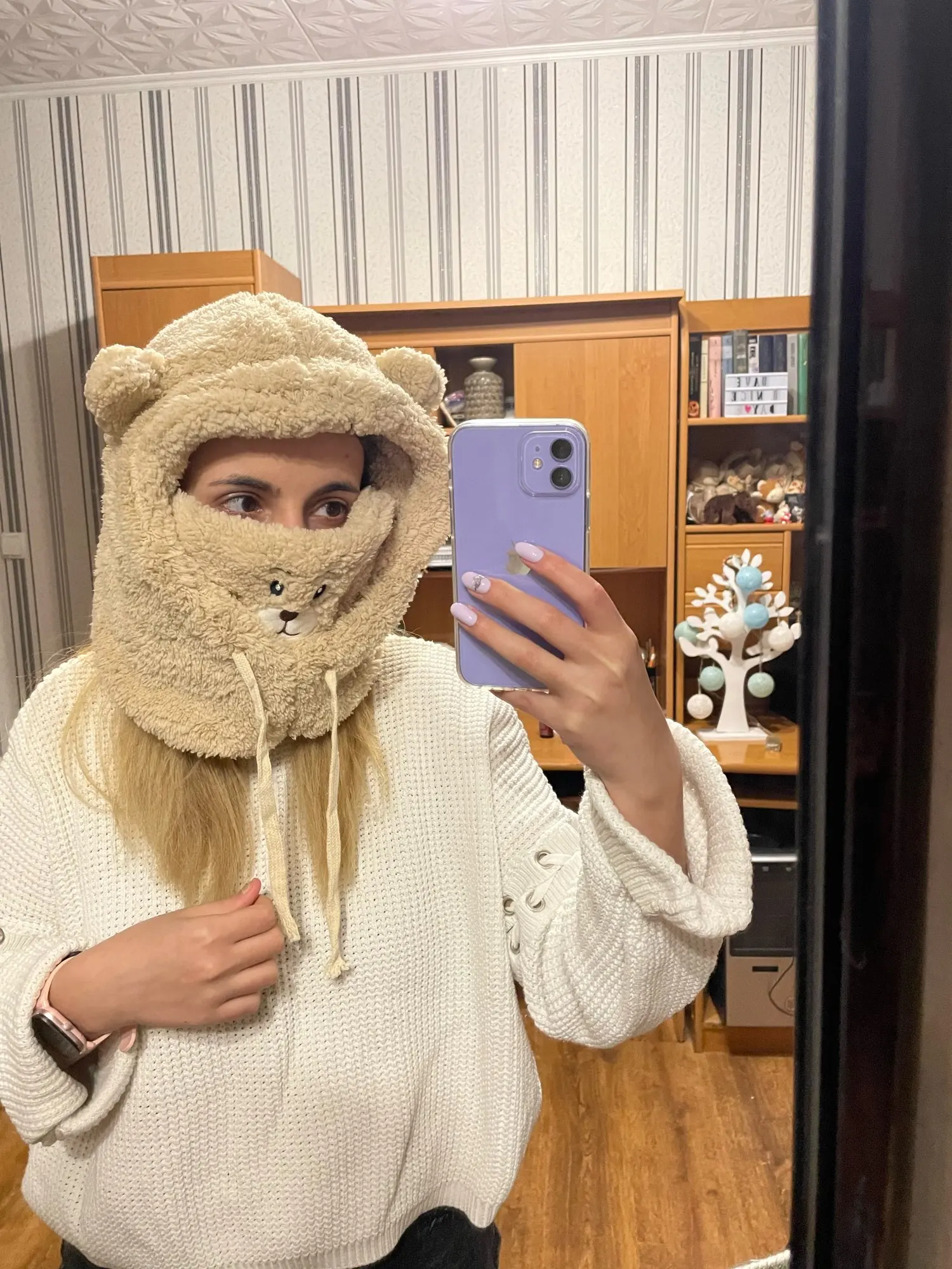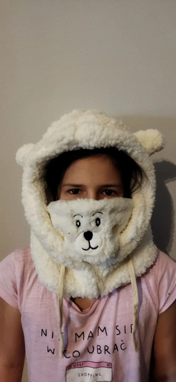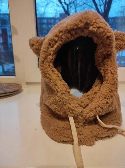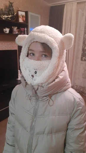 Шапка супер! сшита хорошо, пушистая, мягкая, ребёнок доволен. На ребёнка 7 лет подошла, есть верёвочки, которые регулируют размер.