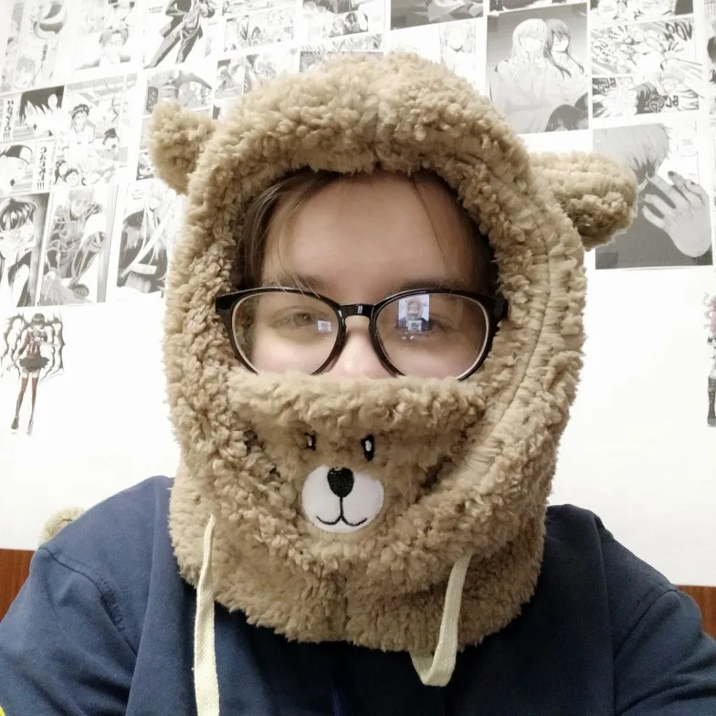 Шапка-бини с мультяшными медвежьими ушками из ягненка теплая Балаклава зимние Утепленные осенние шапочки для женщин и девочек