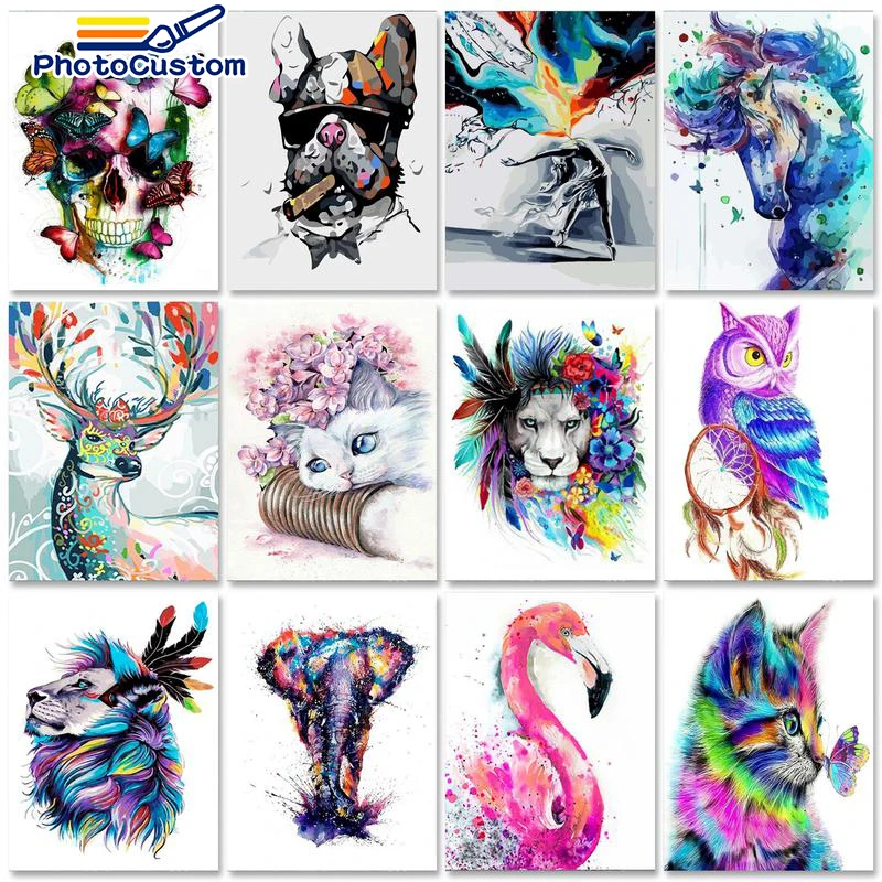 PhotoCustom 60x7 5 см Раскраска по номерам животных DIY раскраска м...