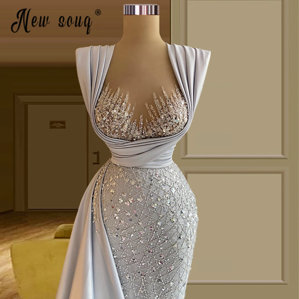 Длинные блестящие вечерние платья русалки Дубаи Роскошные 2021 без рукавов с блестками элегантное женское платье для свадебной вечеринки