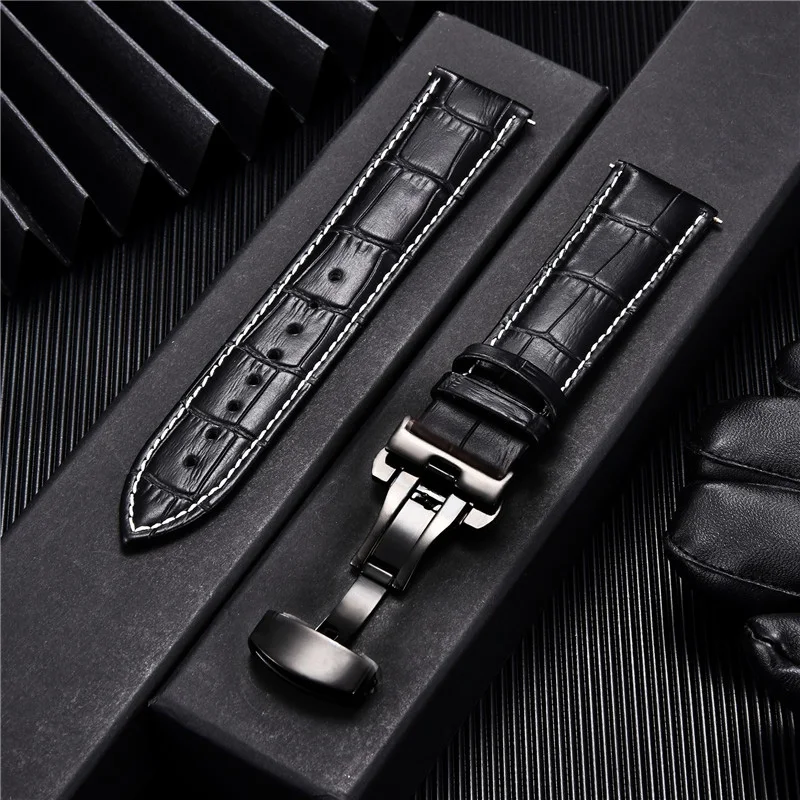 Ремешок для часов, кожаный, с автоматической пряжкой из нержавеющей...