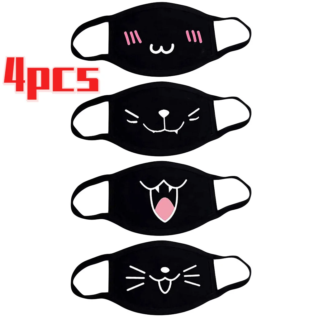 Комплект из 4 предметов в стиле унисекс с милым принтом Анти-пыль многоразовые хлопковые маски для лица, рта Обложка для рта